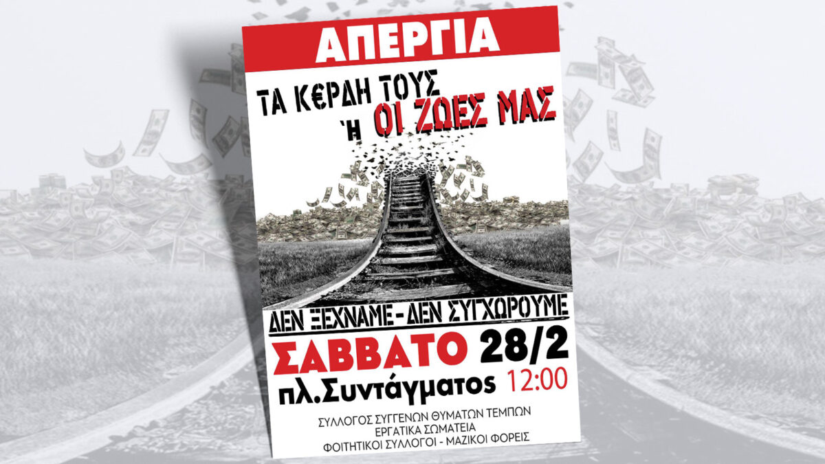 Όλοι σήμερα στην απεργία και στα συλλαλητήρια – Τιμάμε αγωνιστικά τα 3 χρόνια από το έγκλημα στα Τέμπη: Τα κέρδη τους ή οι ζωές μας