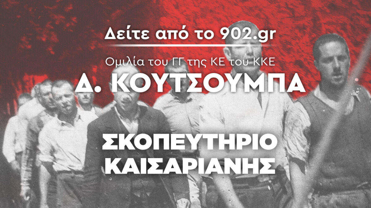 Παρακολουθήστε ζωντανά την ομιλία του ΓΓ της ΚΕ του ΚΚΕ, Δημήτρη Κουτσούμπα, στη μεγάλη πολιτική – πολιτιστική εκδήλωση στο Σκοπευτήριο της Καισαριανής, για να τιμήσει τους 200 κομμουνιστές που εκτελέστηκαν την Πρωτομαγιά του 1944 με τίτλο «Διαβάζοντας την Ιστορία του κόσμου σε μικρά ονόματα».