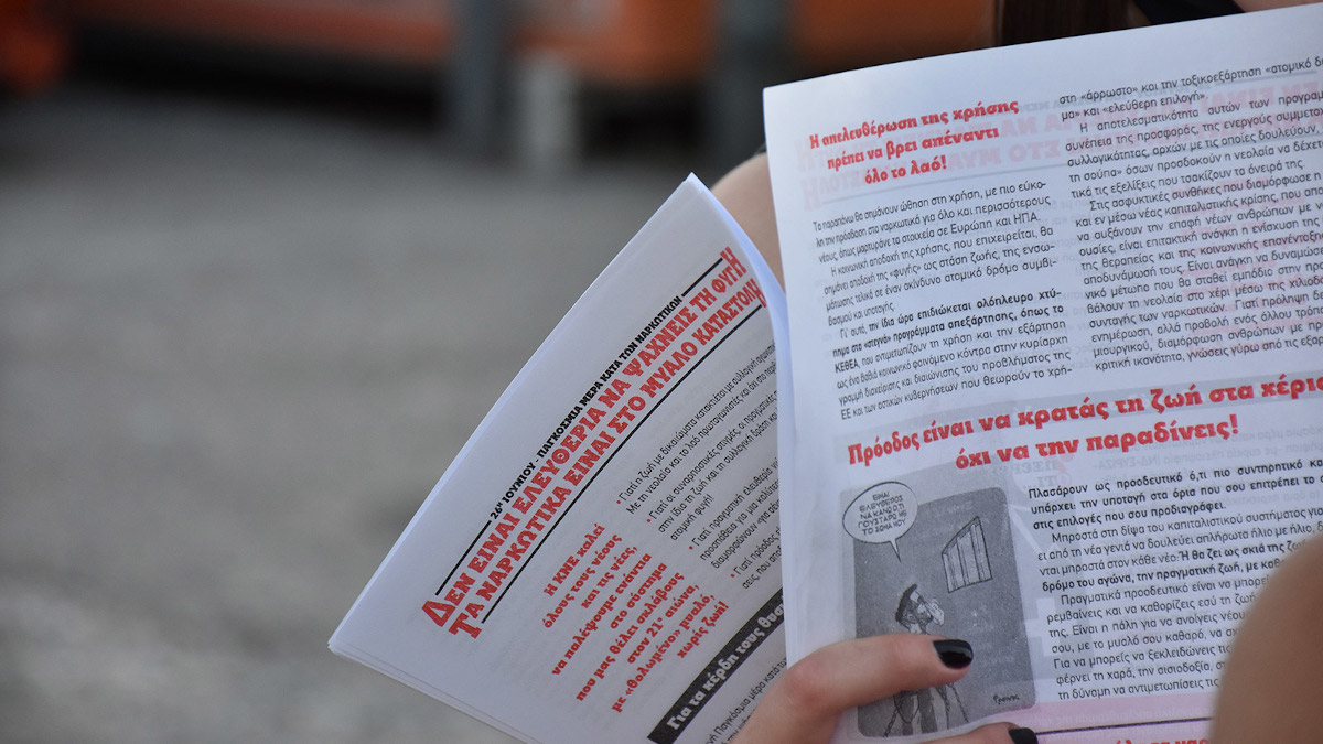 Παρέμβαση της ΚΝΕ στο Θησείο για την Παγκόσμια Ημέρα κατά των Ναρκωτικών