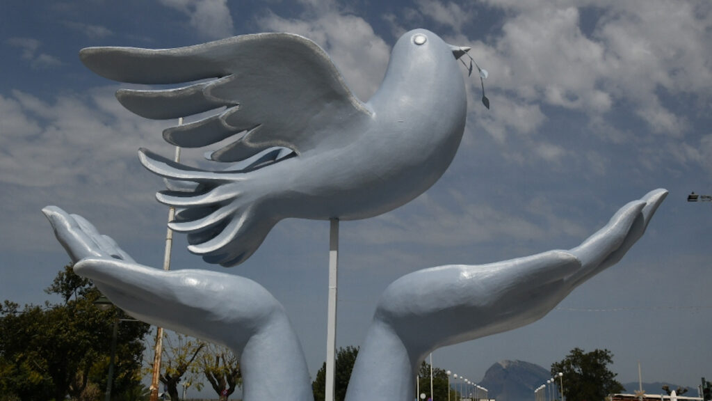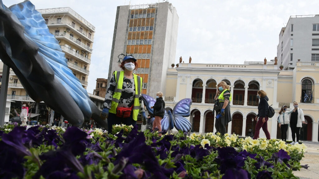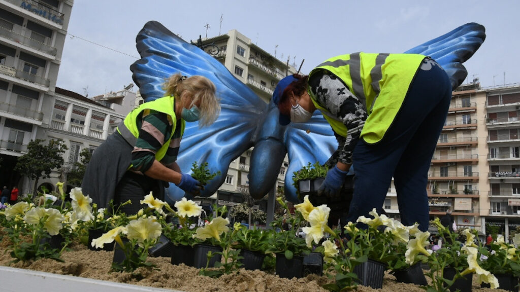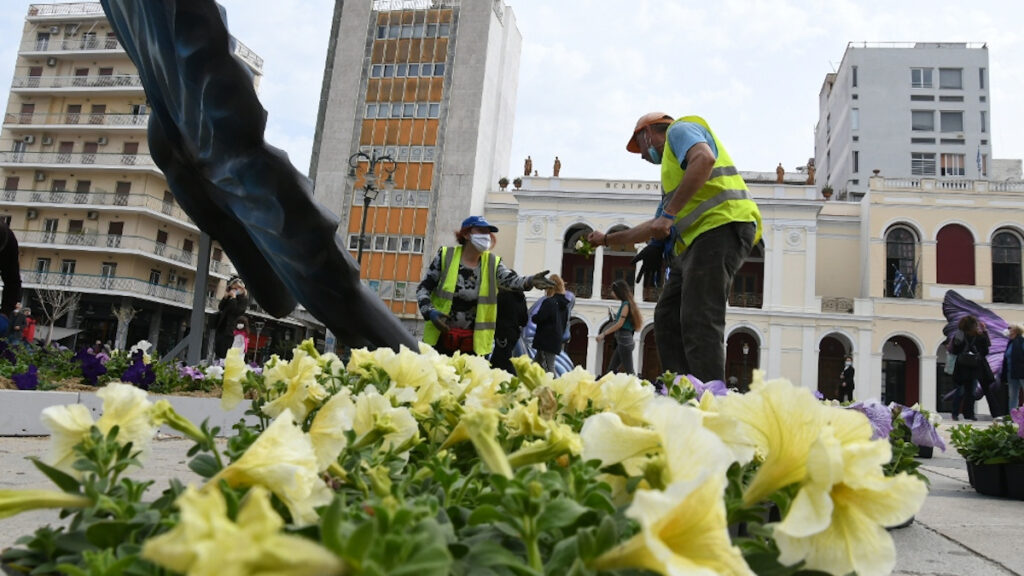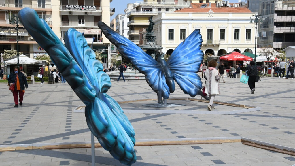 Με τα σύμβολα της Ειρήνης και της Άνοιξης στολίστηκαν οι πλατείες Γεωργίου και Τριών Συμμάχων στην Πάτρα. Στην πλατεία Τριών Συμμάχων δεσπόζει το σύμβολο της Ειρήνης και στην πλατεία Γεωργίου όμορφες πεταλούδες και άνθη.