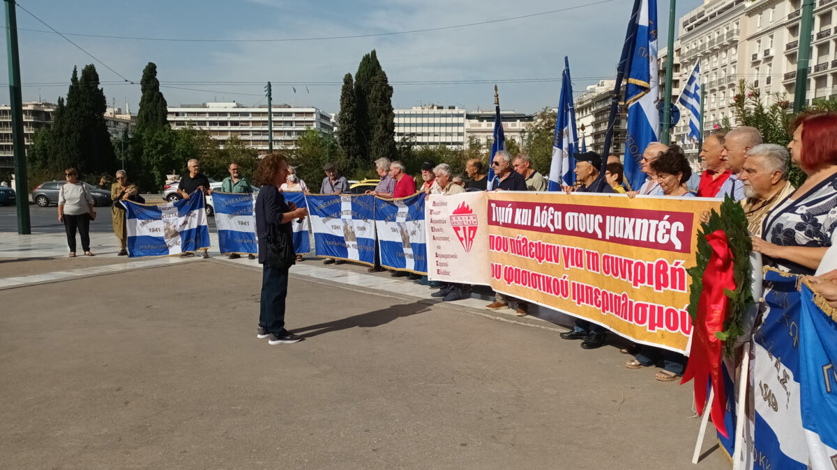 Το στεφάνι της ΠΕΑΕΑ – ΔΣΕ κατέθεσε η πρόεδρός της Τούλα Μητσέα, η οποία απηύθυνε σύντομο χαιρετισμό και κάλεσμα για μαζική συμμετοχή στο συλλαλητήριο που διοργανώνεται από την Κομματική Οργάνωση Αττικής στα Προπύλαια με ομιλητή τον ΓΓ της ΚΕ του ΚΚΕ Δημήτρη Κουτσούμπα.