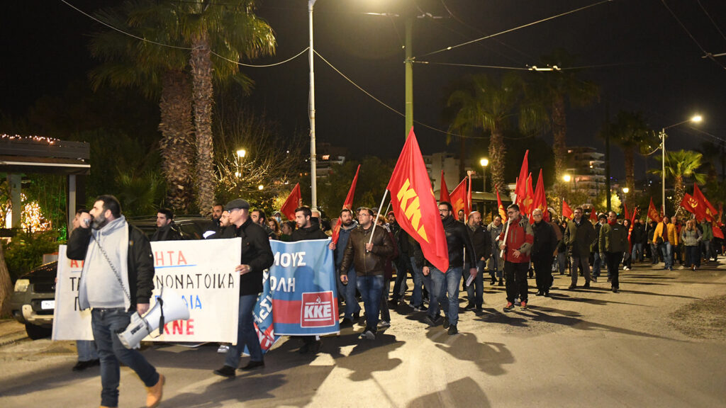 Αρχικά έγινε τη συγκέντρωση στην πλατεία Κανάρη, στο Πασαλιμάνι, όπου μίλησε ο Νίκος Αμπατιέλος, μέλος της ΚΕ του ΚΚΕ, Γραμματέας της ΤΟ Πειραιά και βουλευτής Α Πειραιά.
