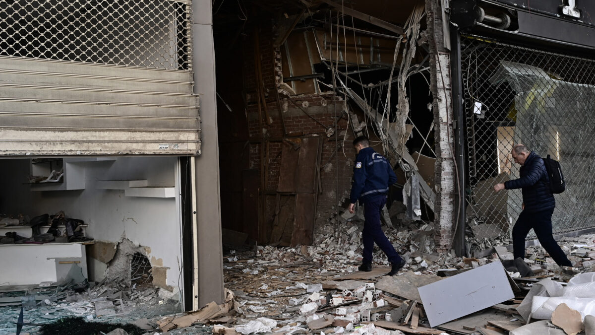 Από την έκρηξη του εκρηκτικού μηχανισμού, που άγνωστοι τοποθέτησαν στην είσοδο του κτιρίου, προκλήθηκαν σημαντικές ζημιές σε κατάστημα υποδημάτων που βρίσκεται στο ισόγειο, ενώ μικρότερες ζημιές υπέστησαν όσα καταστήματα βρίσκονται σε ακτίνα περίπου 300 μέτρων από το σημείο.