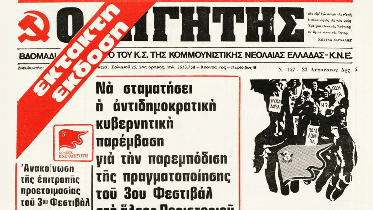 Αν νομίζουν ότι μπορούν να απαγορεύσουν το Φεστιβάλ της ΚΝΕ είναι πολύ γελασμένοι. Στις 6 Ιούνη η Πανεπιστημιούπολη Ζωγράφου θα μετατραπεί σε μία κόκκινη πολιτεία, ασφυκτικά γεμάτη με χιλιάδες νέους και νέες που “δε βολεύονται με λιγότερο ουρανό”. Αυτός είναι και ο χώρος με τον οποίο συνδέθηκε το Φεστιβάλ της ΚΝΕ ήδη από τα πρώτα του βήματα μετά τη χούντα, προβάλλοντας μάλιστα πλατιά τις διεκδικήσεις των φοιτητών. Άλλωστε, δεν είναι η πρώτη φορά που το Φεστιβάλ της ΚΝΕ πραγματοποιείται κόντρα σε απαγορεύσεις, κάτω από την αποφασιστική στάση της νεολαίας και του εργαζόμενου λαού, όπως το 3ο Φεστιβάλ της ΚΝΕ το 1977 στο Περιστέρι.