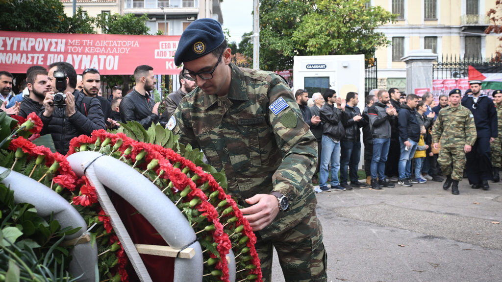 Πολυτεχνείο: Με χειροκροτήματα και συνθήματα υποδέχθηκε ο κόσμος τους στρατευμένους που κατέθεσαν στεφάνι