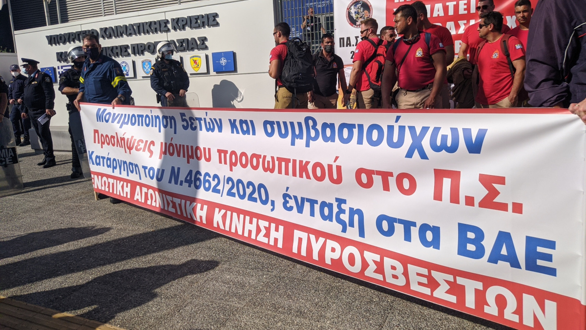 Σε εξέλιξη είναι αυτή την ώρα η ένστολη πανελλαδική συγκέντρωση των πυροσβεστών έξω απ το υπουργείο κλιματικής κρίσης και πολιτικής προστασίας. Μαζική είναι η συμμετοχή των εποχικών πυροσβεστών.