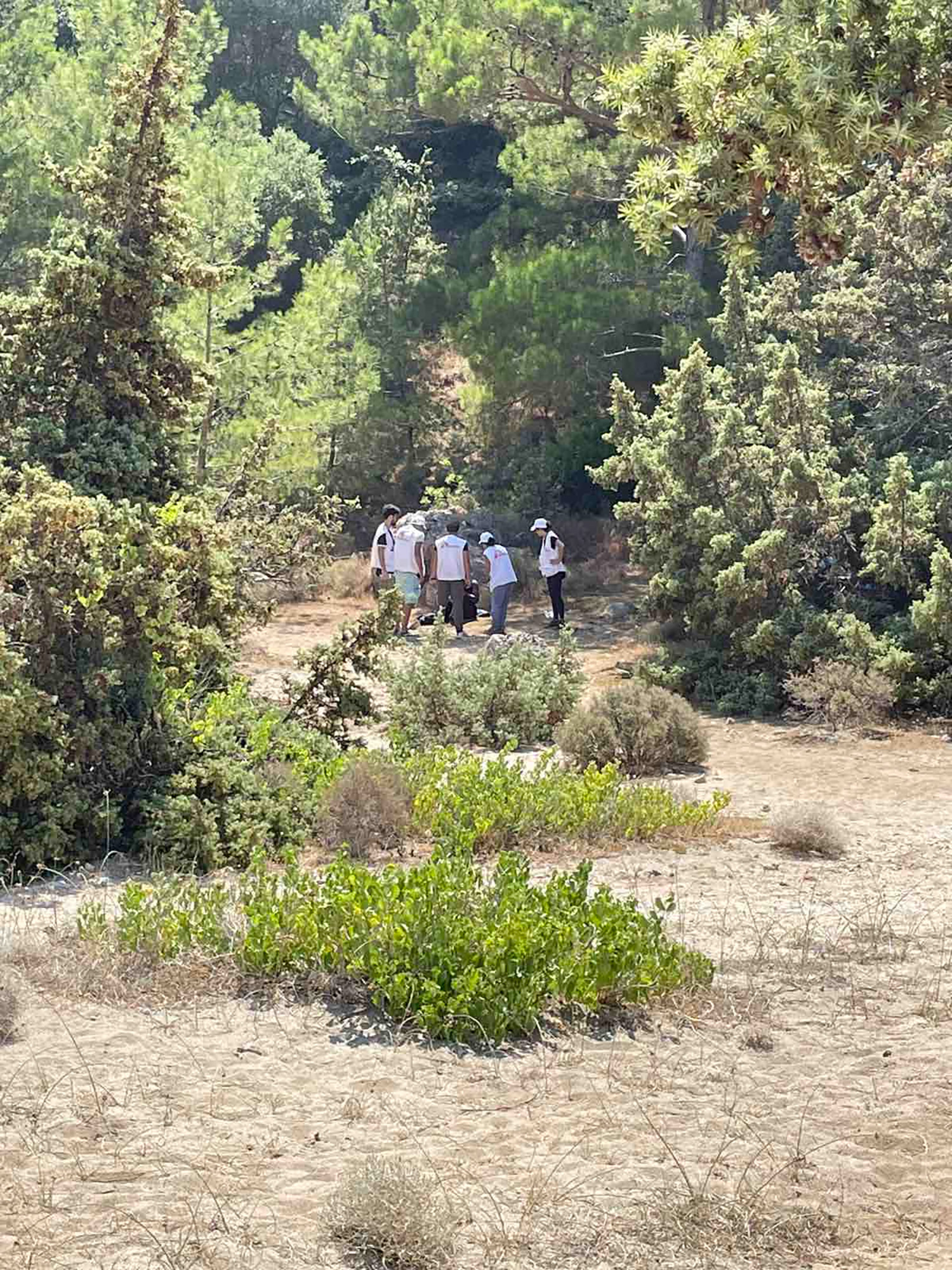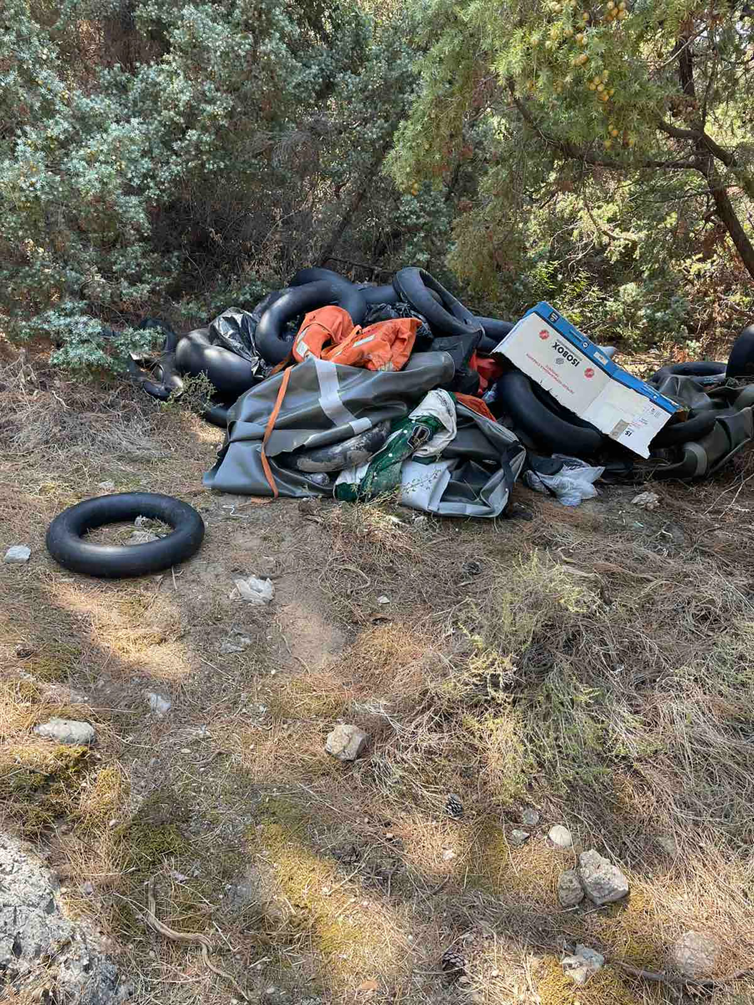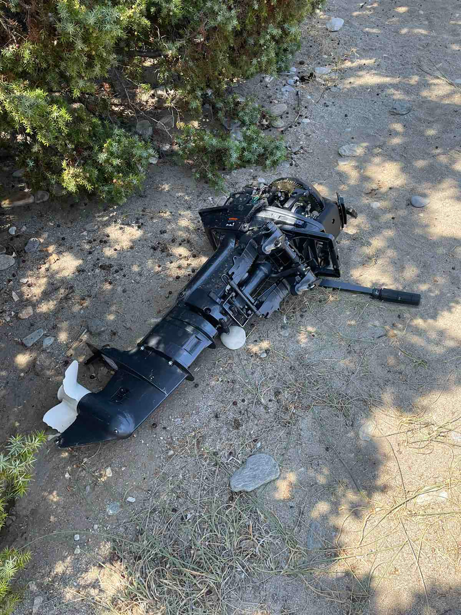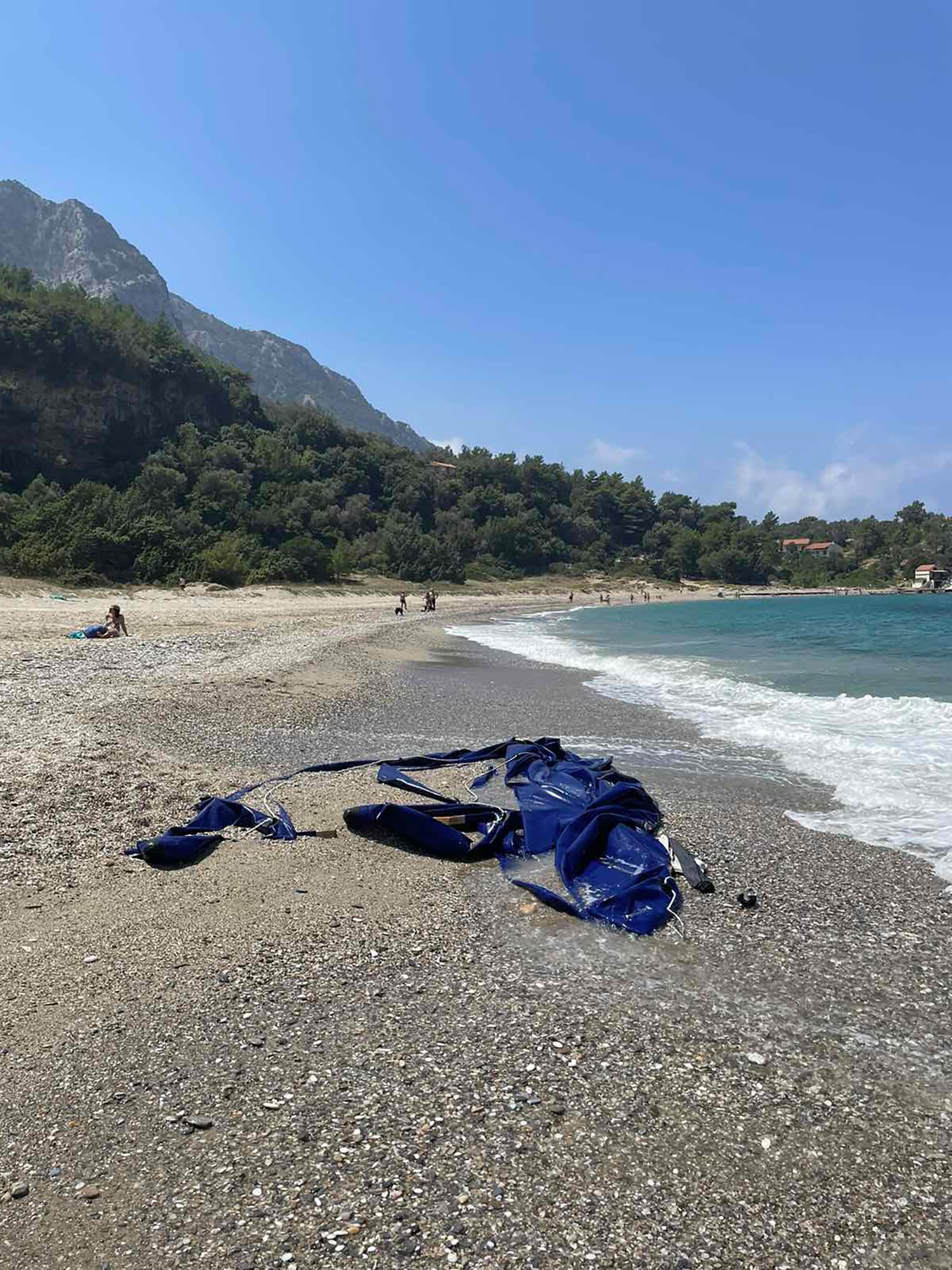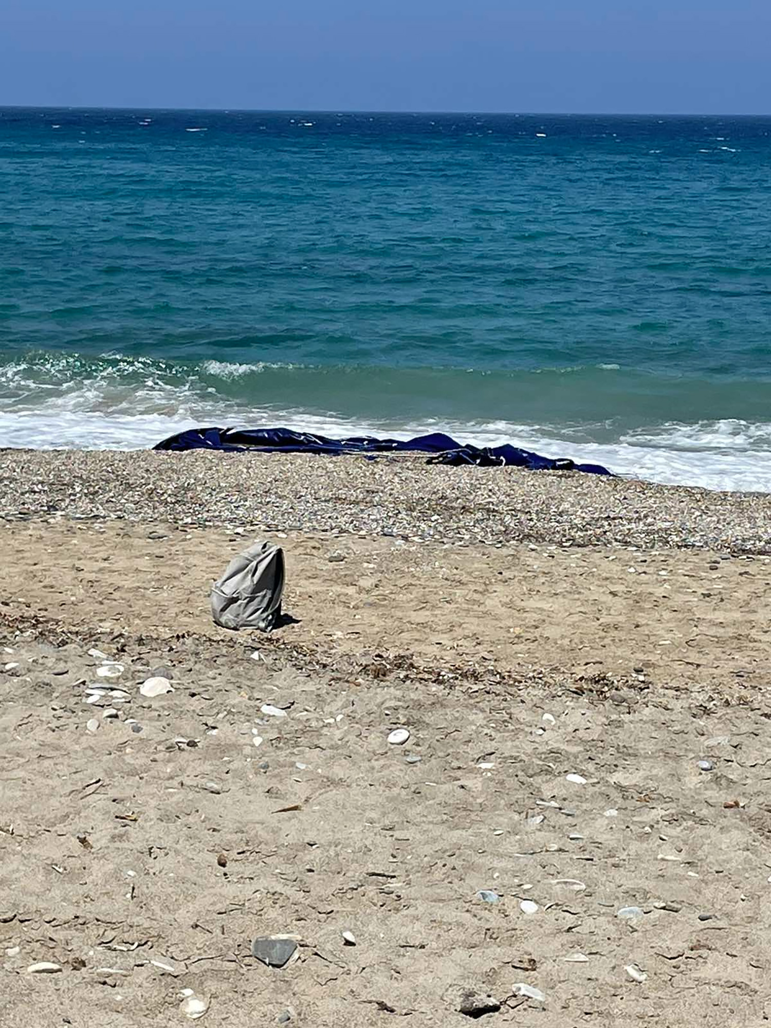 Στην παραλία υπήρχαν σαμπρέλες για σωσίβια, παπούτσια και άλλα προσωπικά αντικείμενα. Επίσης ήταν μια φουσκωτή βάρκα και μερικά μέτρα πιο πέρα ήταν σπασμένη μηχανή βάρκας.