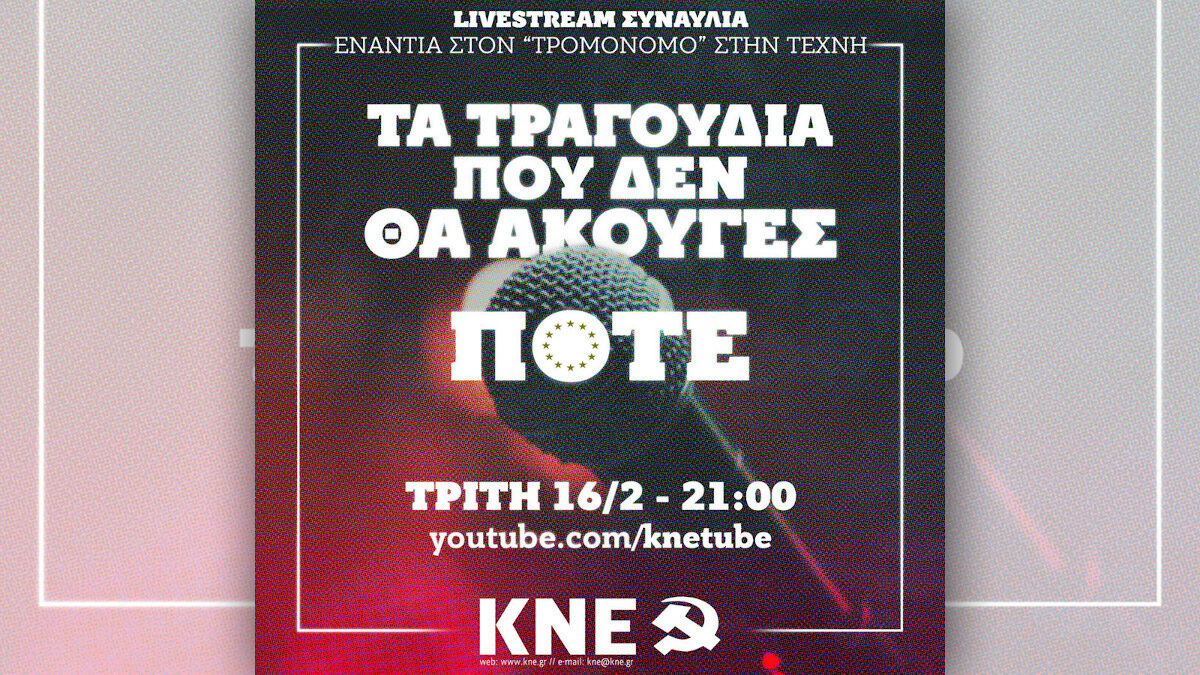 Σήμερα στις 9 μ.μ. η μεγάλη διαδικτυακή συναυλία ενάντια στον «τρομονόμο» στην Τέχνη που διοργανώνει η ΚΝΕ.