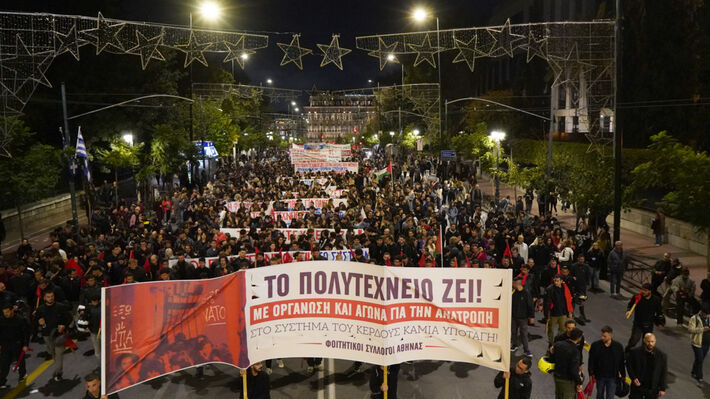 Χιλιάδες νέοι και νέες συμμετέχουν στην μεγάλη αντιιμπεριαλιστική διαδήλωση στην αμερικάνικη πρεσβεία με τα μπλοκ των Φοιτητικών του Συλλόγων στέλνοντας μάλιστα και το μήνυμα: