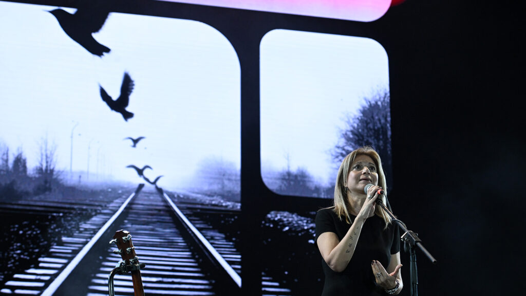 «Μακάρι να μη χρειαζόταν να είμαστε εδώ απόψε, μακάρι να ήμασταν με τα αγαπημένα μας πρόσωπα μαζί στη ζωή». Με αυτά τα λόγια οι διοργανωτές καλωσόρισαν το πλήθος. Να μνημονεύσουμε τους ανθρώπους που άδικα έφυγαν τόσο νωρίς, σημείωσαν ακόμα στο άνοιγμα. Ο Λουδοβίκος των Ανωγείων άνοιξε τη συναυλία με ένα μοιρολόι που έγραψε προς τιμήν της νιότης που χάθηκε στο έγκλημα των Τεμπών. «Όρκο βαρύ σου δίνουμε, ν’ ακούσουν οι ουρανοί, πως θα δικαιωθούμε ο,τι κ να γενεί»,σημείωσε.