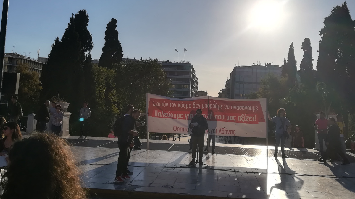 Κινητοποίηση δεκάδων Συλλόγων Φοιτητών κατά της κρατικής καταστολής στις ΗΠΑ γίνεται αυτήν την ώρα στο κέντρο της Αθήνας.