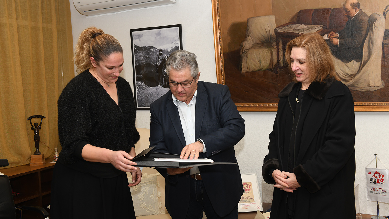 Ο ΓΓ της ΚΕ του ΚΚΕ Δημήτρης Κουτσούμπας συναντήθηκε σήμερα στα γραφεία του κόμματος στον Περισσό, με την οικογένεια του Ναύαρχου Γιώργου Ροΐδη που έφυγε από τη ζωή τον περασμένο Μάιο και ο οποίος με την αποστρατεία του έδωσε τη μάχη μέχρι την τελευταία του στιγμή μέσα από τις γραμμές του ΚΚΕ.