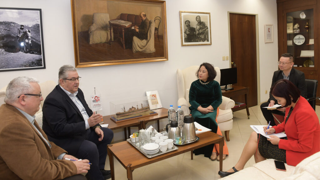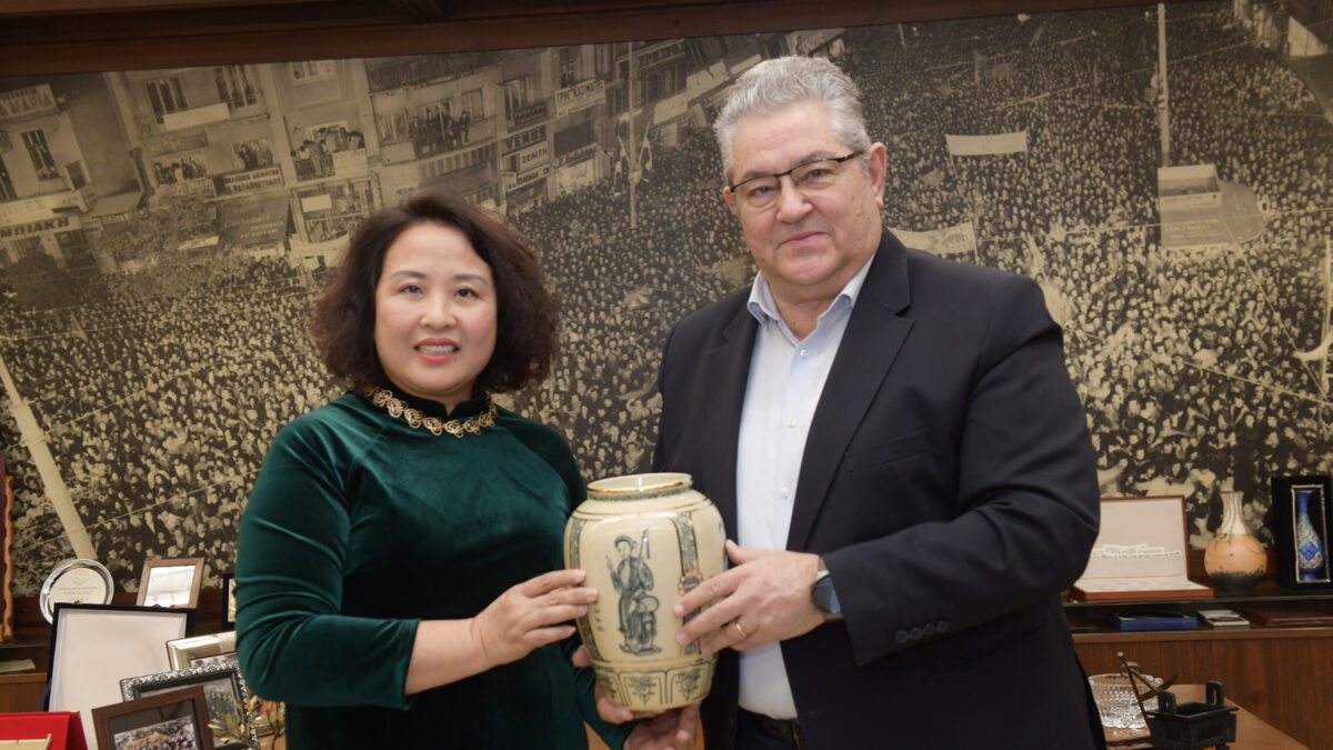 Ο ΓΓ της ΚΕ του ΚΚΕ Δημήτρης Κουτσούμπας συναντήθηκε σήμερα, Παρασκευή 21 Μαρτίου, με τη νέα πρέσβη του Βιετνάμ Pham Thi Thu Huong, στην έδρα της ΚΕ.