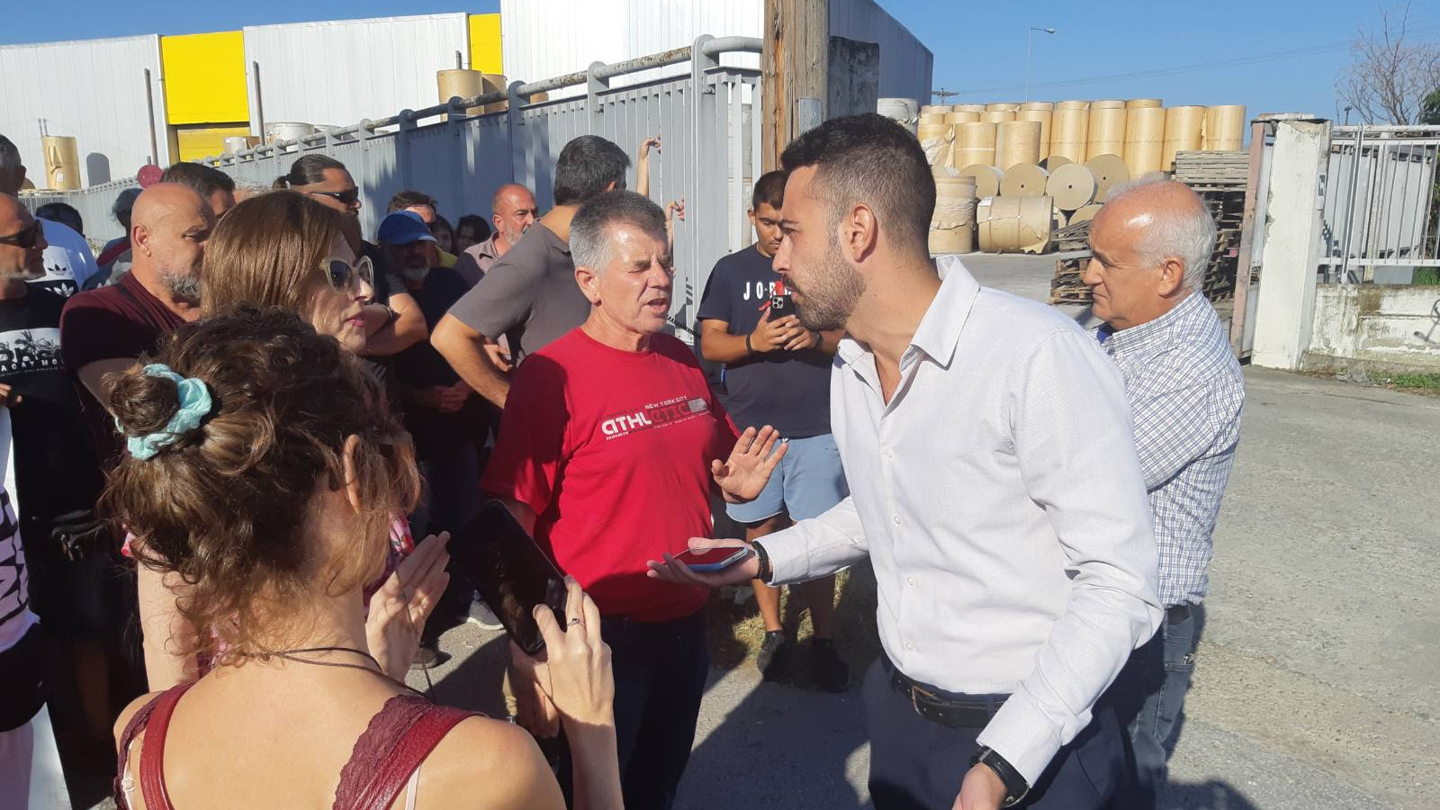 Οι απεργοί όμως περιφρουρούν αποφασιστικά την πύλη του εργοστασίου, πίσω από το πανό τους, φωνάζοντας συνθήματα όπως «η τρομοκρατία δεν θα περάσει», «εργάτες ενωμένοι ποτέ νικημένοι». Στο πλευρό τους βρίσκονται και άλλα εργατικά σωματεία της περιοχής, εκφράζοντας την αλληλεγγύη τους.