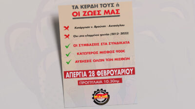ΠΑΜΕ: Απεργία 28 Φλεβάρη – Το έγκλημα αυτό δεν θα ξεχαστεί! Τα κέρδη τους ή οι ζωές μας