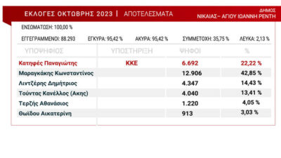 Νίκαια – Ρέντη: Στο β’ γύρο η «Λαϊκή Συσπείρωση» με τον Παναγιώτη Κατηφέ