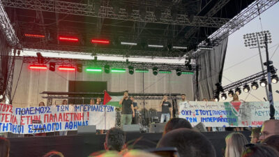 «Λευτεριά στην Παλαιστίνη» από όλο το γήπεδο της Ριζούπολης στη συναυλία του Σωκράτη Μάλαμα