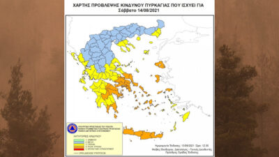 Χάρτης Πρόβλεψης Κινδύνου Πυρκαγιάς – 14/8/21