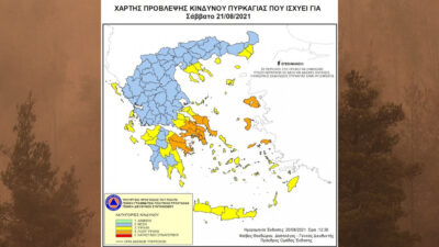 Χάρτης Πρόβλεψης Κινδύνου Πυρκαγιάς – 21/08/21