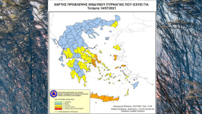 Χάρτης Πρόβλεψης Κινδύνου Πυρκαγιάς – 14/07/21