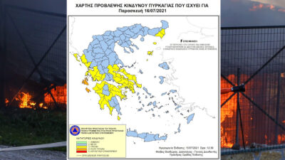 Χάρτης Πρόβλεψης Κινδύνου Πυρκαγιάς – 16/07/21