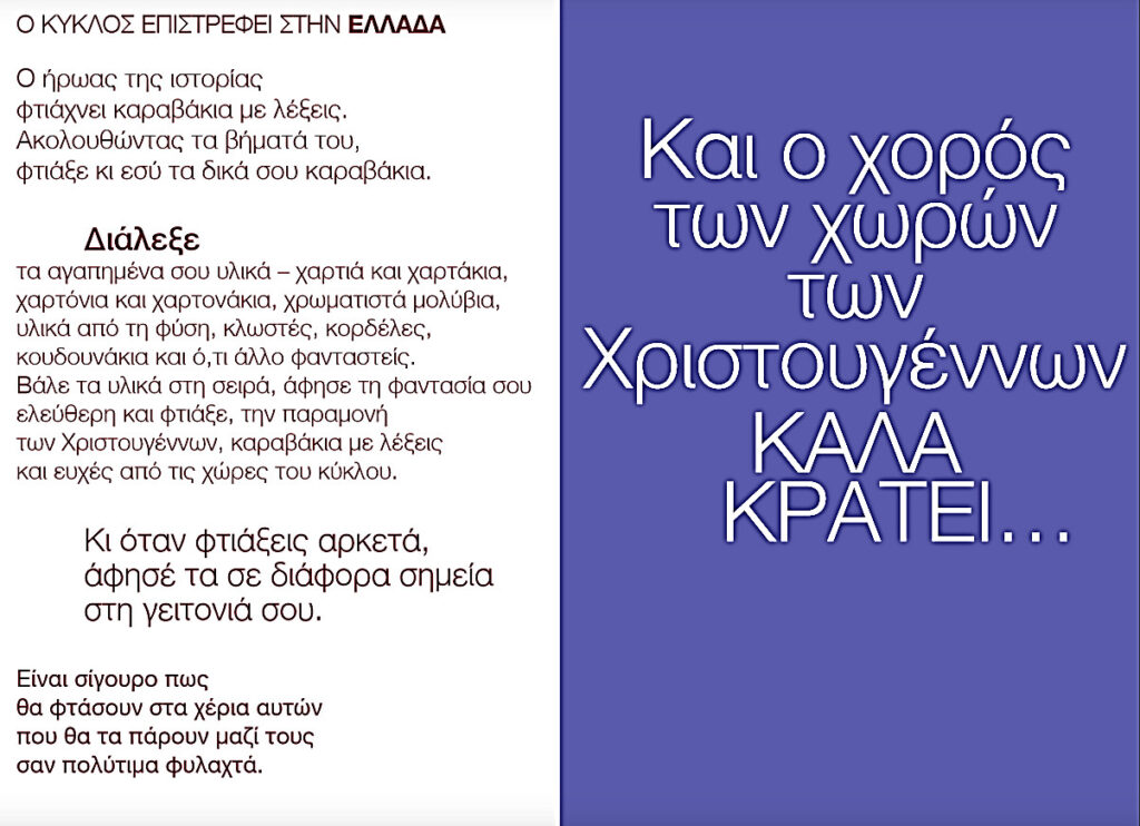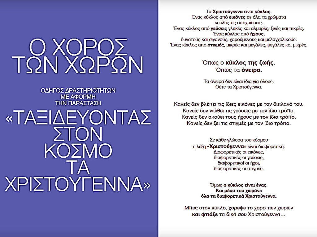 Στο ίδιο link μπορείτε να βρείτε και τον Οδηγό δραστηριοτήτων που ετοίμασε το Μέγαρο με αφορμή την παιδικό θέαμα «Ταξιδεύοντας στον κόσμο τα Χριστούγεννα».