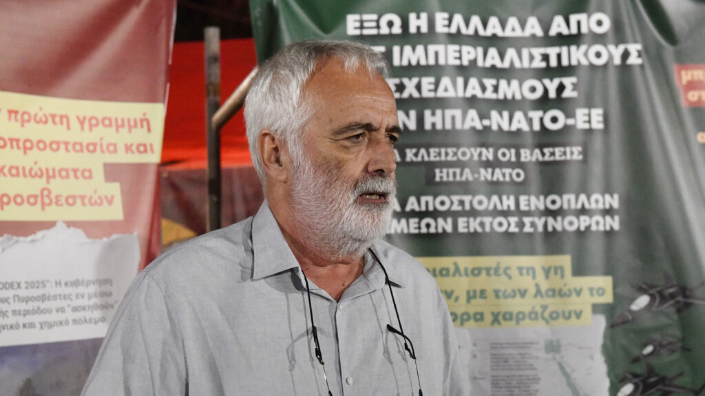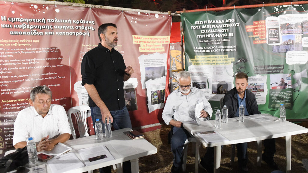 Την εκδήλωση άνοιξε ο Ευθύμης Δημάκης, μέλος της ΚΕ του ΚΚΕ, καλωσορίζοντας ομιλητές και παρευρισκόμενους για τη συμμετοχή σε μια συζήτηση, επίκαιρη όσο ποτέ, όπως τόνισε, καθώς η εμπλοκή της χώρας στα ιμπεριαλιστικά σχέδια συνεχώς αναβαθμίζεται με τον πόλεμο που συνεχίζεται αδιάκοπα στην Ουκρανία και τη γενοκτονία του Παλαιστινιακού λαού από το κράτος δολοφόνο του Ισραήλ.