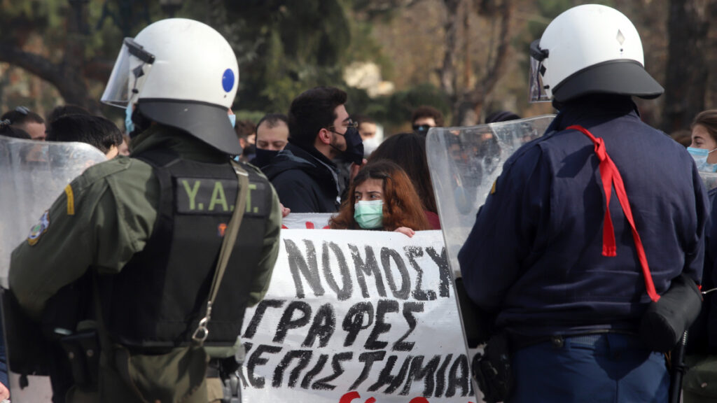 Αναίτια και απρόκλητη επίθεση από τα ΜΑΤ δέχθηκαν σήμερα το μεσημέρι στη Θεσσαλονίκη φοιτητές, κατά τη διάρκεια κινητοποίησης ενάντια στο νομοσχέδιο της κυβέρνησης. Οι αστυνομικές δυνάμεις εφαρμόζοντας το δόγμα «νόμος και τάξη» της κυβέρνησης που επιχειρεί να επιβάλει σιωπή απέναντι στην αντιλαϊκή της πολιτική, επιχείρησαν να εμποδίσουν την πραγματοποίηση της πορείας ρίχνοντας χημικά, ενώ προχώρησαν και σε τρεις προσαγωγές, οι οποίες σύμφωνα με πληροφορίες μετατράπηκαν σε συλλήψεις.