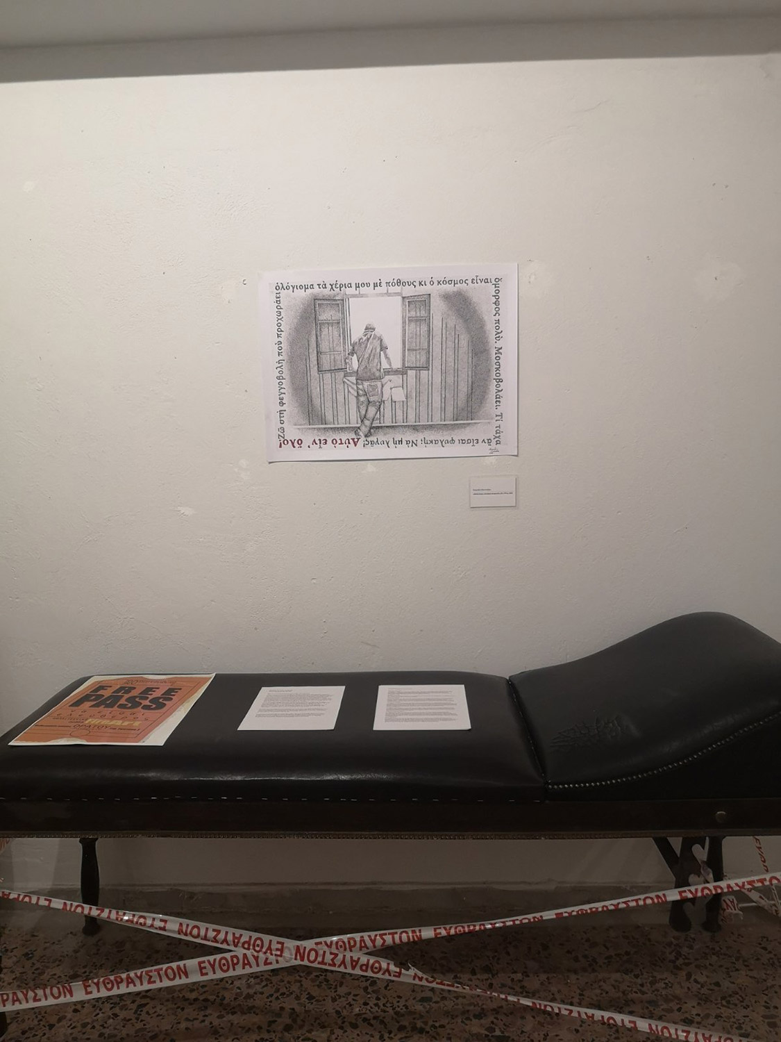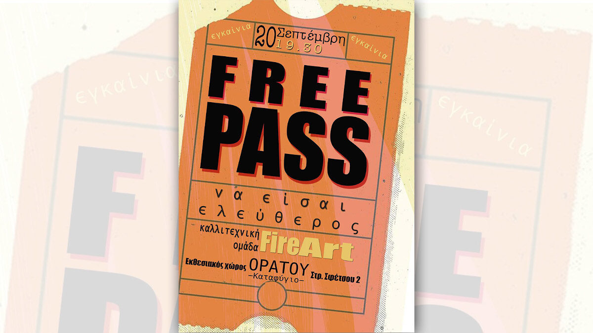 Τα εγκαίνια της έκθεσης με τίτλο «Free pass» (να είσαι ελεύθερος) θα πραγματοποιηθούν τη Δευτέρα 20 Σεπτέμβρη στις 7.30 μ.μ. στην αίθουσα «Καταφύγιο» στον Ορατό (Στρ. Σφέτσου 2).