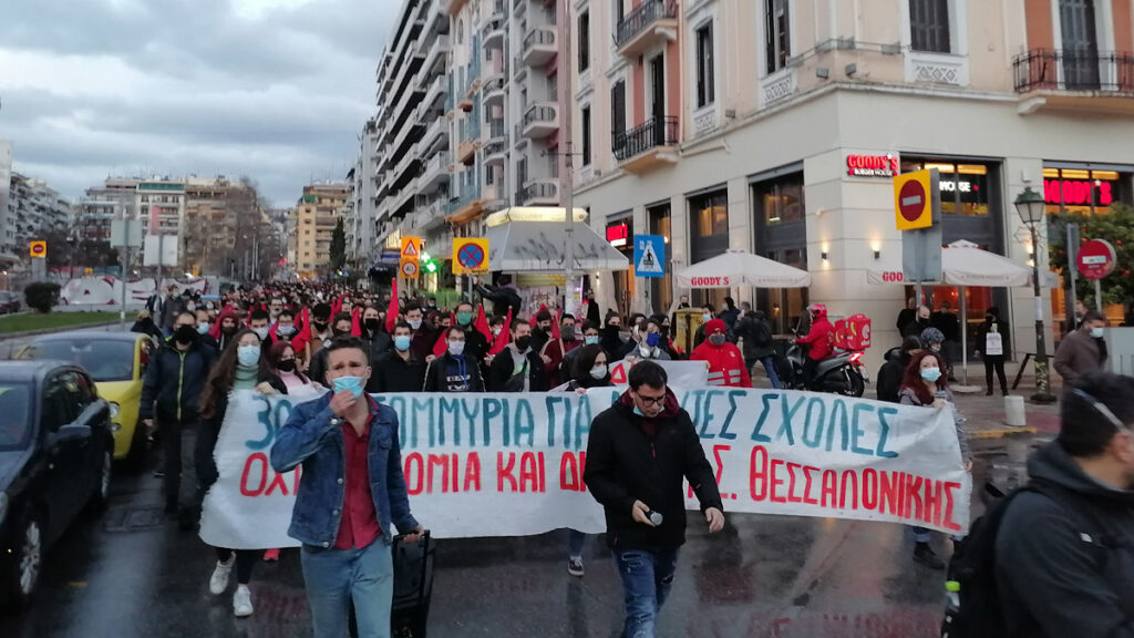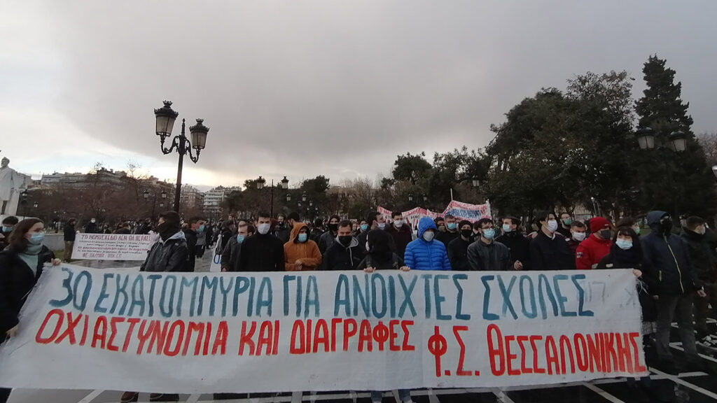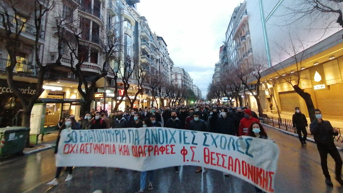 Η κινητοποίηση ξεκίνησε με συγκέντρωση στο Άγαλμα Βενιζέλου. Ακολούθησε μαχητική πορεία στους δρόμους της πόλης. «Στους δρόμους, είναι οι φοιτητές, δώστε λεφτά να ανοίξουν οι σχολές», «30 εκατομμύρια για τους φοιτητές και όχι για αστυνομία και διαγραφές», «Με ΜΑΤ και βία δεν γίνεται Παιδεία, οι φοιτητές ζητούν μόρφωση και Υγεία», «Δώστε λεφτά για ΜΕΘ και Παιδεία, όχι για καταστολή και τρομοκρατία». Αυτά και άλλα συνθήματα ακούστηκαν στους κεντρικούς δρόμους της Θεσσαλονίκης.