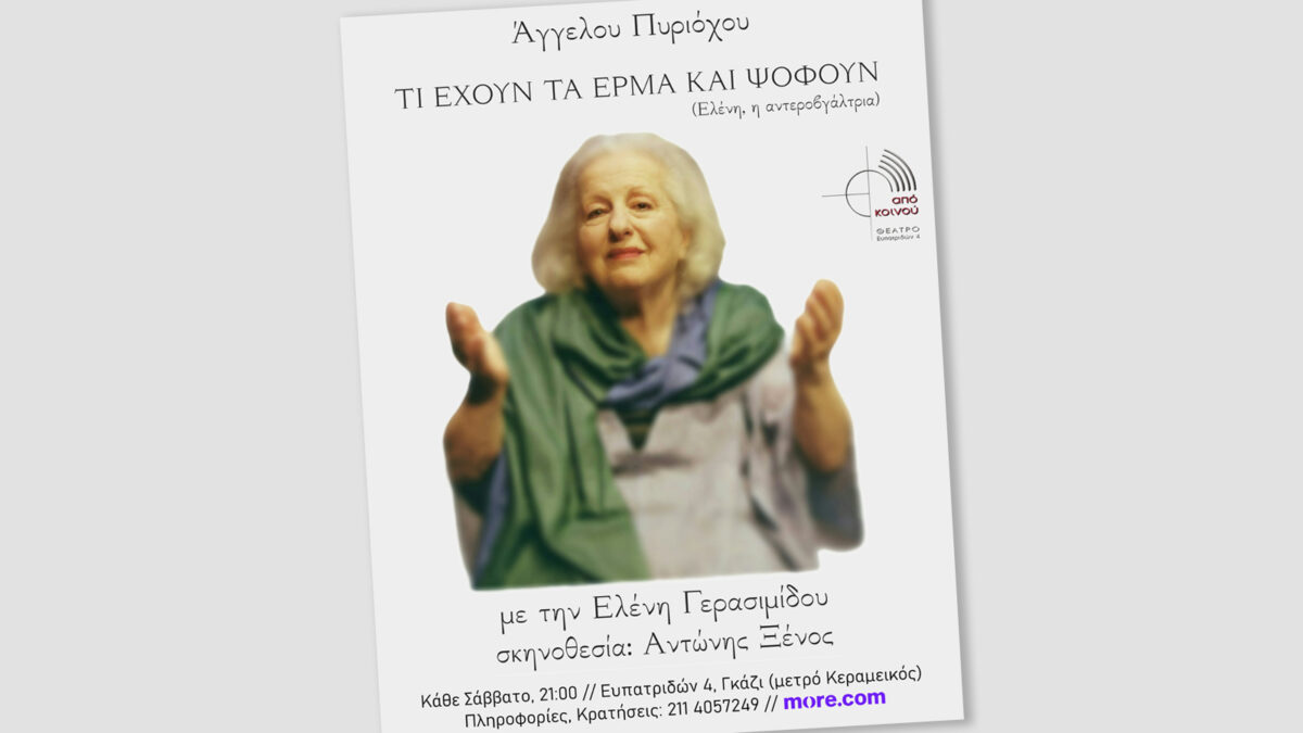 Ηλεκτρονική προπώληση: https://www.more.com/theater/ti-exoun-ta-erma-kai-psofoun-tou-a-pyrioxou/