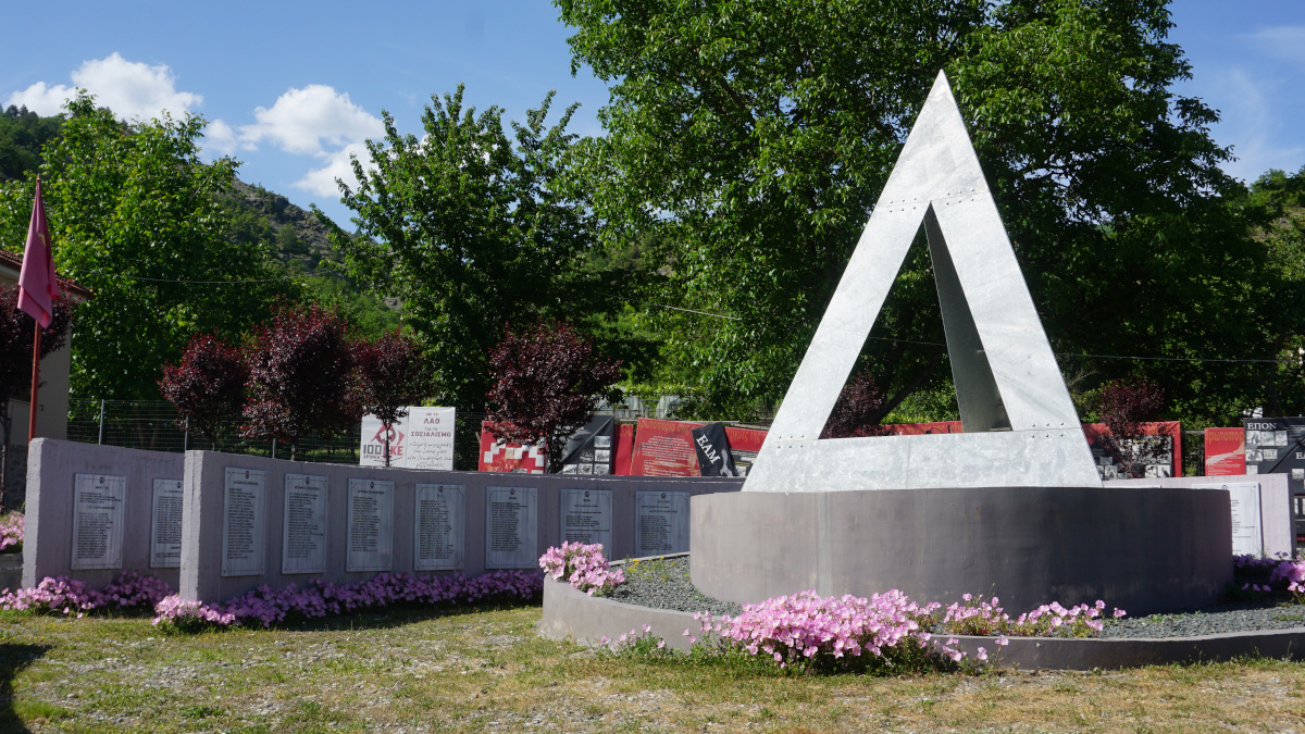 Φεύγοντας από την Κόνιτσα, κατά μήκος του ποταμού Σαρανταπόρου, ταξιδεύουμε για περίπου 60 χλμ. ως τα Μαστοροχώρια. Εκεί, στο χωριό Θεοτόκος, επάνω στο δρόμο, ξεπροβάλλει το επιβλητικό μνημείο, αφιερωμένο στην ηρωική τρίχρονη εποποιία του Δημοκρατικού Στρατού Ελλάδας (ΔΣΕ). Ένα πανύψηλο, τρισδιάστατο “Δ”, περιβαλλόμενο από πλάκες, με τα ονόματα όσων ντόπιων (χωριά του Γράμμου) έπεσαν στις μάχες που έδωσε ο ΔΣΕ, οι οποίες σχηματίζουν διαδρόμους. Γύρω από αυτές υπάρχει έκθεση αφιερωμένη στην περίοδο ’46-’49, με αναφορά στα προγενέστερα χρόνια, από το ’44 και μετά, που οδήγησαν στην απόφαση συγκρότησης του ΔΣΕ. Παντού στο χώρο, όμορφα, ανοιχτόχρωμα μοβ λουλούδια, μικρός φόρος τιμής… σαν αυθόρμητος… στους ήρωες.