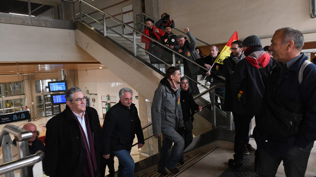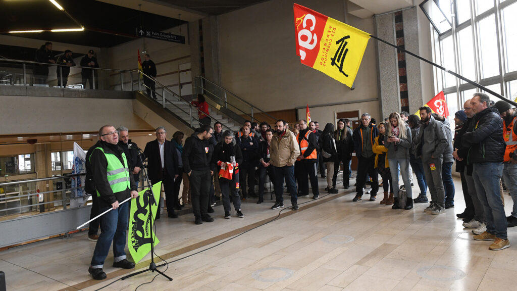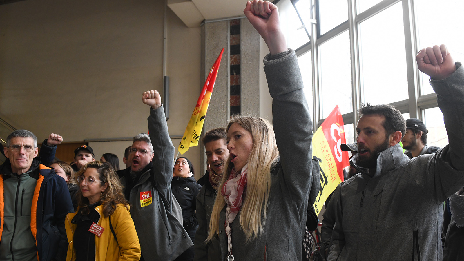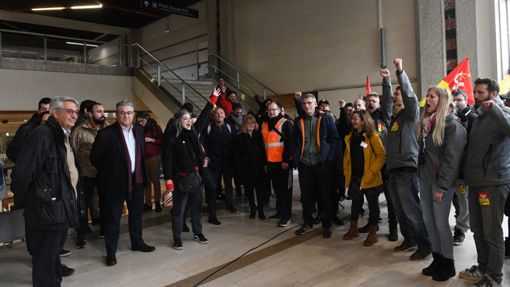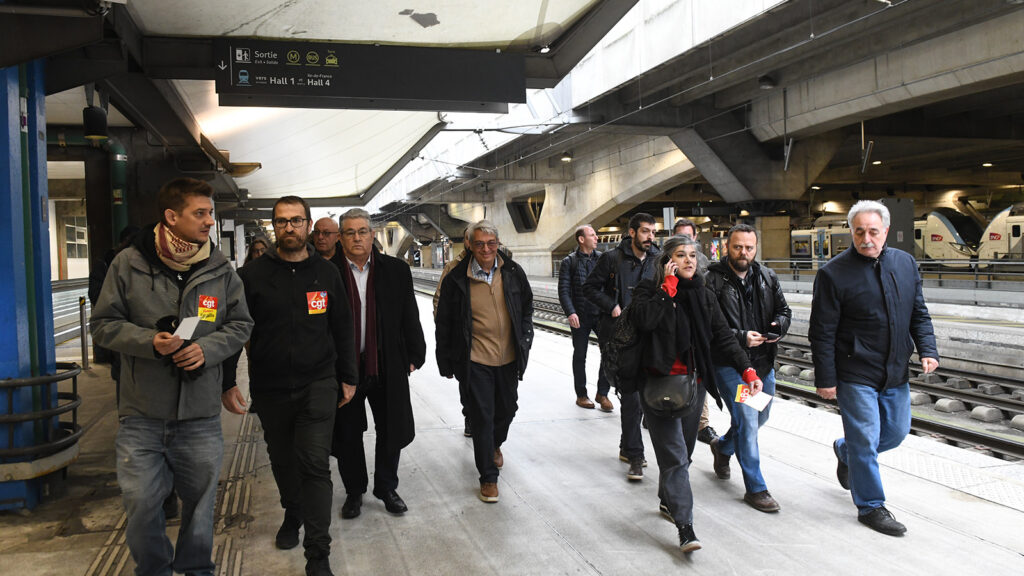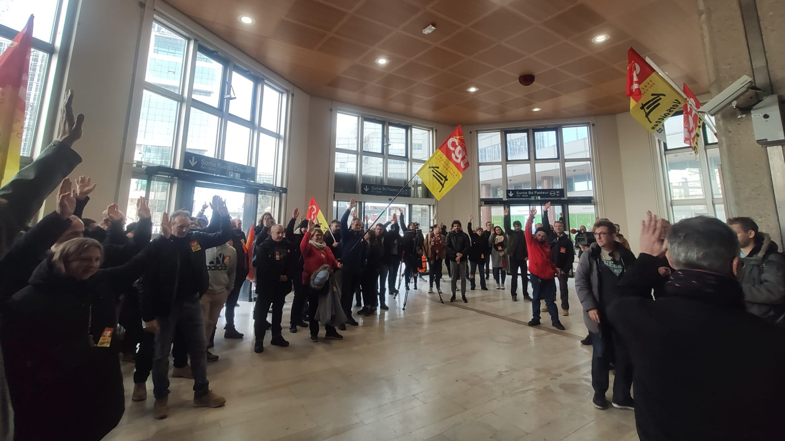 Δεν αφήνουμε τίποτα να χαθεί, τα παίρνουμε πίσω όλα», και «ενισχύουμε την απεργία, μπλοκάρουμε την οικονομία», ήταν μερικά από τα συνθήματα που ακούστηκαν στον σταθμό Μον Παρνάς, έναν από τους πέντε μεγαλύτερους σιδηροδρομικούς σταθμούς της Γαλλίας, ο οποίος ήταν άδειος από τρένα λόγω της απεργίας.