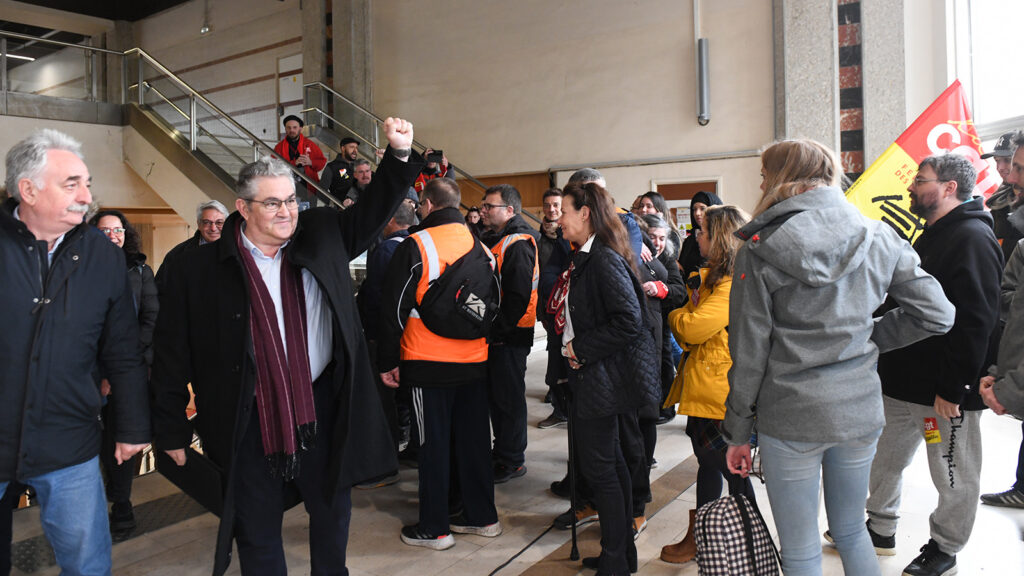 Είμαστε μαζί σας σε αυτό τον αγώνα που δίνετε, με τα συνδικάτα σας στην πρώτη γραμμή, για να αποσυρθεί, για να καταργηθεί, η αντεργατική συνταξιοδοτική μεταρρύθμιση της κυβέρνησης Μακρόν.