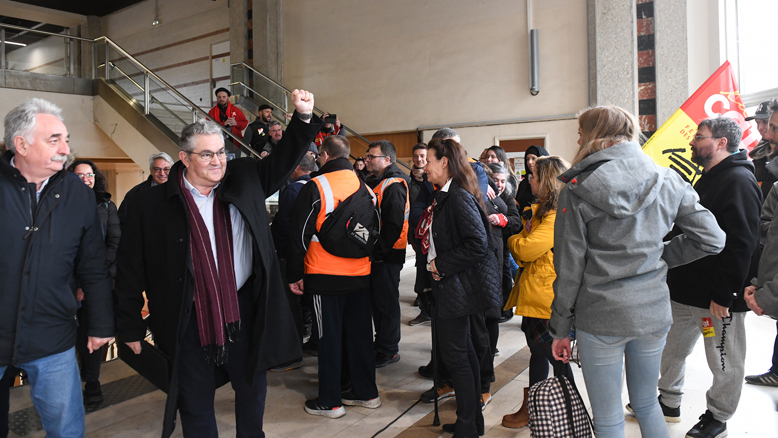 Ο Δημήτρης Κουτσούμπας ξεκίνησε την ομιλία του στα γαλλικά, μεταφέροντας «την αλληλεγγύη των Ελλήνων κομμουνιστών, της εργατικής τάξης της Ελλάδας προς την αγωνιζόμενη εργατική τάξη της Γαλλίας». Με τον ίδιο τρόπο, μιλώντας στα γαλλικά τελείωσε την ομιλία του, σημειώνοντας πως «είμαστε η τάξη που παράγει τον πλούτο σε Γαλλία και Ελλάδα. Είμαστε η τάξη που τραβάει μπροστά την κοινωνία. Και οι αγώνες των εργατών της Γαλλίας σήμερα τραβάνε μπροστά ολόκληρη την εργατική τάξη. Το ΚΚΕ, η εργατική τάξη της Ελλάδας, ήταν, είναι και θα είναι στο πλευρό σας».