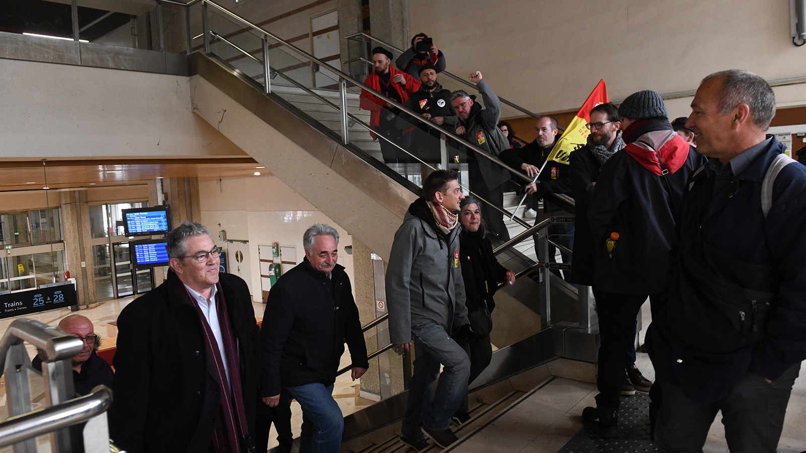 Ο ΓΓ της ΚΕ του ΚΚΕ Δημήτρης Κουτσούμπας βρέθηκε σήμερα, ημέρα της πανεργατικής απεργίας στη Γαλλία, στο σιδηροδρομικό σταθμό του Μον Παρνάς, στο Παρίσι, όπου τον υποδέχτηκαν θερμά οι παρευρισκόμενοι εργαζόμενοι σιδηροδρομικοί, στους οποίους απηύθυνε χαιρετισμό.