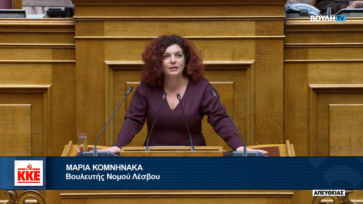 Το ΚΚΕ χαιρετίζει «κάθε γυναίκα που βιώνει τις συνέπειες του ιμπεριαλιστικού πολέμου, όπως και την εκμετάλλευση, την ανισοτιμία σε κάθε πλευρά της ζωής της», τόνισε η Μαρία Κομνηνάκα, βουλευτής του ΚΚΕ, σήμερα από το βήμα της Βουλής στο πλαίσιο ειδικής συνεδρίασης της Ολομέλειας με αφορμή την Παγκόσμια Ημέρα της Γυναίκας στις 8 Μάρτη.