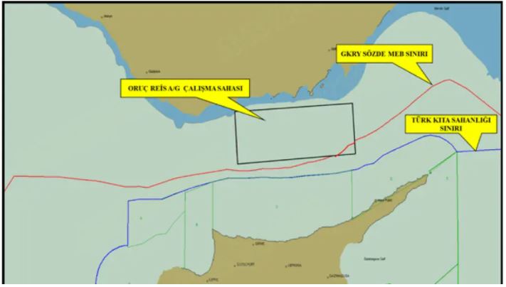 Το ερευνητικό πλοίο της τουρκικής εταιρίας Πετρελαίου (TP) Oruc Reis, υπό τη συνοδεία της Κορβέτας TCG Karatas (P1212) του Πολεμικού Ναυτικού της Τουρκίας