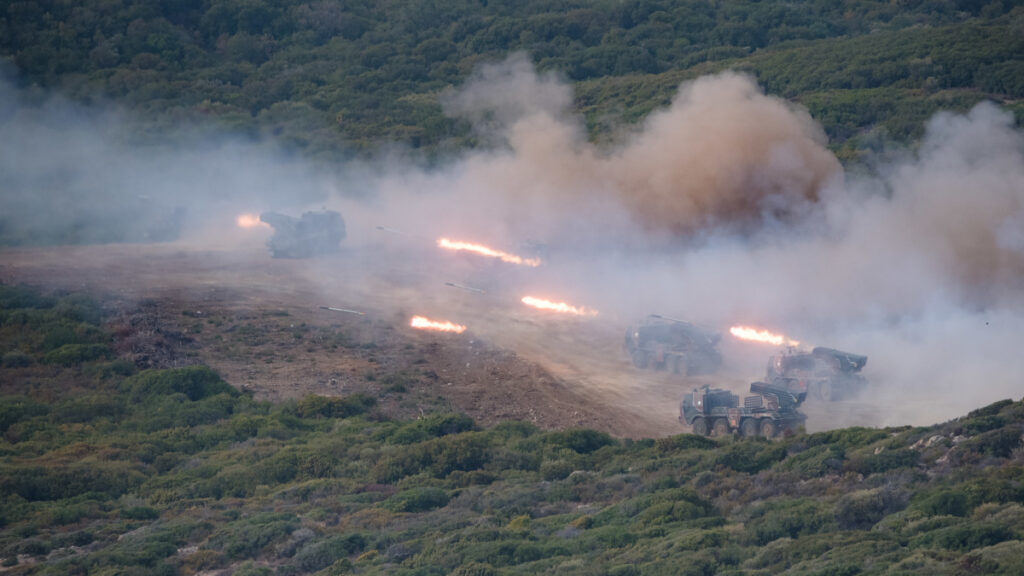 Εκτελέστηκαν βολές από αυτοκινούμενα πυροβόλα Μ109, PzH 2000GR και από Συστήματα Πολλαπλών Εκτοξευτών RΜ-70 (ΠΕΠ RΜ-70).