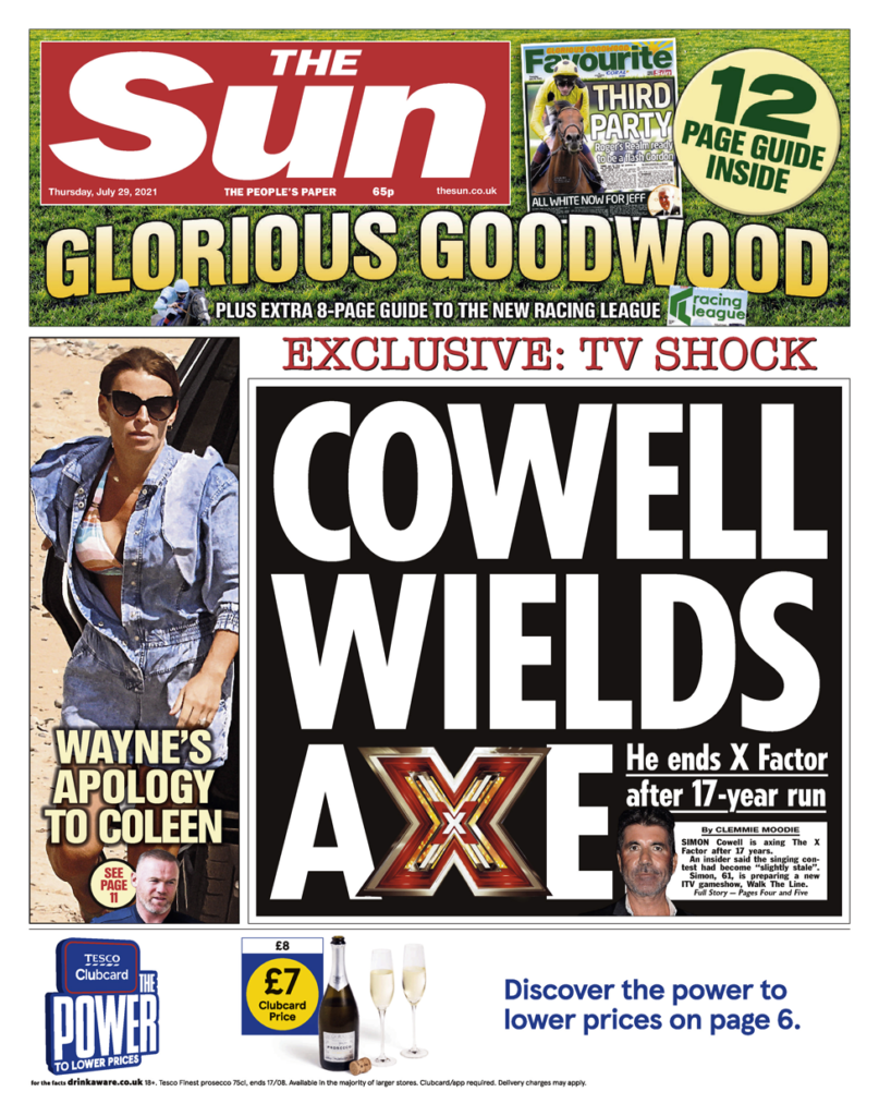 Η Sun αποκαλύπτει ότι ο μεγιστάνας της showbiz Simon Cowell σταματάει το X-Factor μετά από 17 χρόνια. Η εφημερίδα επικαλείται έμπιστη πηγή που αποκαλύπτει ότι ο διαγωνισμός τραγουδιού είχε γίνει «λίγο παρωχημένος», τονίζοντας ότι προετοιμάζει ένα καινούριο τηλεπαιχνίδι στο ITV, που ονομάζεται, Walk The Line.