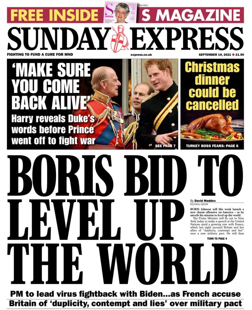 Εν τω μεταξύ, σύμφωνα με την Sunday Express, όλη αυτή η κλιμακούμενη διπλωματική διαμάχη για τη συμφωνία Aukus, έρχεται καθώς ο πρωθυπουργός Μπόρις Τζόνσον θα ξεκινήσει αυτήν την εβδομάδα μια νέα «εκστρατεία φιλίας» προς την Αμερική. Η εφημερίδα γράφει ότι ο Τζόνσον θα μεταβεί στη Νέα Υόρκη την Κυριακή για να κάνει μια ομιλία στα Ηνωμένα Έθνη ενώ μαίνεται η διαμάχη με τη Γαλλία, η οποία χθες το βράδυ κατηγόρησε τη Βρετανία και τους συμμάχους της για «διπροσωπία, περιφρόνηση και ψέματα» για τη νέα στρατιωτική συμφωνία. «Ο πρωθυπουργός θα ηγηθεί της μάχης για τον ιό με τον Μπάιντεν, καθώς οι Γάλλοι κατηγορούν τη Βρετανία για «διπροσωπία, περιφρόνηση και ψέματα», προσθέτει η εφημερίδα.