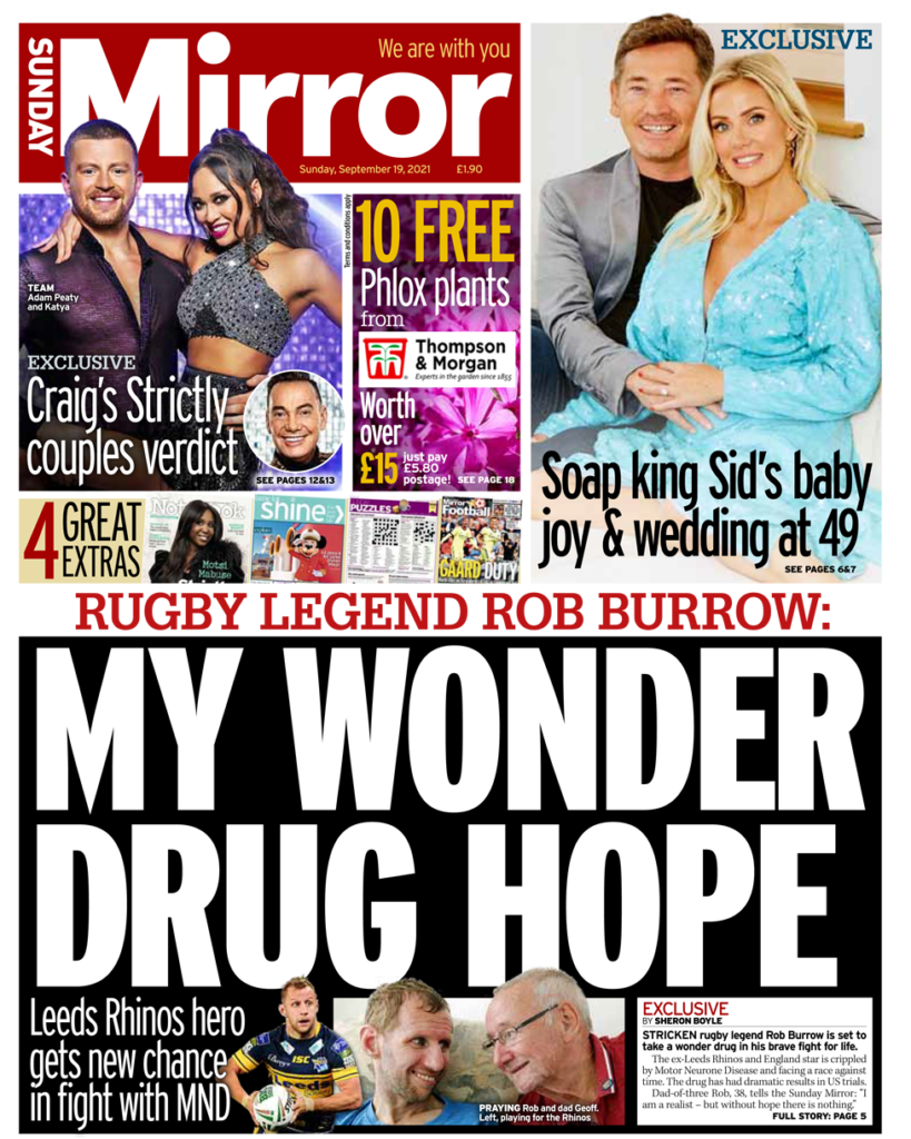 Ο θρύλος του πρωταθλήματος ράγκμπι με ειδικές ανάγκες, Rob Burrow, πρόκειται να πάρει ένα «θαυματουργό φάρμακο» αντιμετωπίζοντας αγώνα με το χρόνο για τη ζωή του, αναφέρει η Mirror της Κυριακής. Η εφημερίδα λέει ότι ο πρώην σταρ των Leeds Rhinos και της Αγγλίας, ο οποίος έχει (ALS), τη Νόσο του κινητικού νευρώνα, πρόκειται να λάβει μια θεραπεία που έχει φέρει “καταπληκτικά αποτελέσματα” σε δοκιμές στις ΗΠΑ. Ο πατέρας τριών παιδιών, Rob, 38 ετών, λέει στην εφημερίδα: «Είμαι ρεαλιστής, αλλά χωρίς ελπίδα δεν υπάρχει τίποτα».
