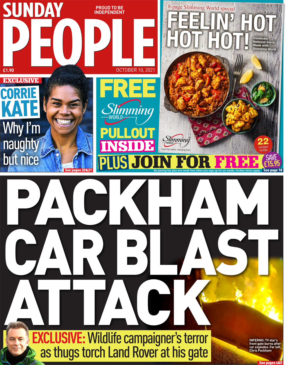 Ένα Land Rover πυρπολήθηκε και αφέθηκε έξω από την πόρτα του ακτιβιστή Chris Packham, παρουσιαστή της εκπομπής του BBC, Springwatch, αναφέρουν οι Sunday People στην πρώτη σελίδα τους. Ο σταρ της τηλεόρασης αποκάλυψε χθες ότι άγνωστοι ανατίναξαν με τηλεχειριστήριο το αυτοκίνητό, έξω από την πόρτα του σπιτιού του.