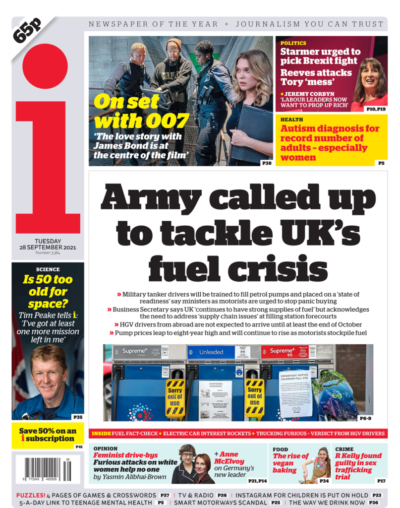 Οι Times αναφέρουν ότι ο πρωθυπουργός καλείται να “αφήσει τους εργαζόμενους στην υγεία της Βρετανίας να έχουν προτεραιότητα στα καύσιμα”. Σύμφωνα με την εφημερίδα, η Βρετανική Ιατρική Ένωση λέει ότι υπάρχει «πραγματικός κίνδυνος» το προσωπικό του NHS να μην μπορεί να κάνει τη δουλειά του εάν οι ουρές συνεχίσουν να αυξάνονται. Αλλού, η εφημερίδα αναφέρει ότι μια νέα τηλεφωνική γραμμή για την αναφορά τραπεζικής απάτης θα ξεκινήσει την Πέμπτη.