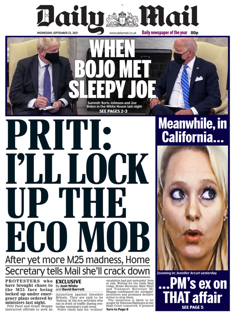 Η υπουργός Εσωτερικών, Priti Patel, σε άρθρο στη Daily Mai καταδίκασε τους «αλαζόνες» διαδηλωτές για το κλίμα, που «έφεραν χάος στο Μ25 και υποσχέθηκε να τους καταστείλει». Οι Priti Patel και Grant Shapps, έδωσαν εντολή να ζητήσουν περιοριστικό ένταλμα κατά του Insulate Britain. Αρχηγοί της αστυνομίας δήλωσαν ότι η «απερίσκεπτη» κλιμάκωση κατά τη διάρκεια της χθεσινής διαμαρτυρίας των ακτιβιστών, που κατέλαβαν τον δρόμο, έθεσε σε κίνδυνο τη ζωή των οδηγών, ενώ η εντολή είναι πιθανό να εκδοθεί από το Ανώτατο Δικαστήριο αύριο. Αν εκδοθεί σημαίνει ότι οι διαδηλωτές θα αντιμετωπίσουν σύλληψη και πιθανή άμεση φυλάκιση για περιφρόνηση του δικαστηρίου. Παρόλα αυτά οι ακτιβιστές αντιμετωπίζονται ατομικά και τα αδικήματα για τα οποία μπορεί να κρατηθεί ο καθένας είναι σχετικά μικρά και στις περισσότερες περιπτώσεις δεν επιβάλλουν ποινή φυλάκισης. Αυτό σημαίνει ότι ακόμη και αν κατηγορηθούν, δεν θα προφυλακιστούν.
