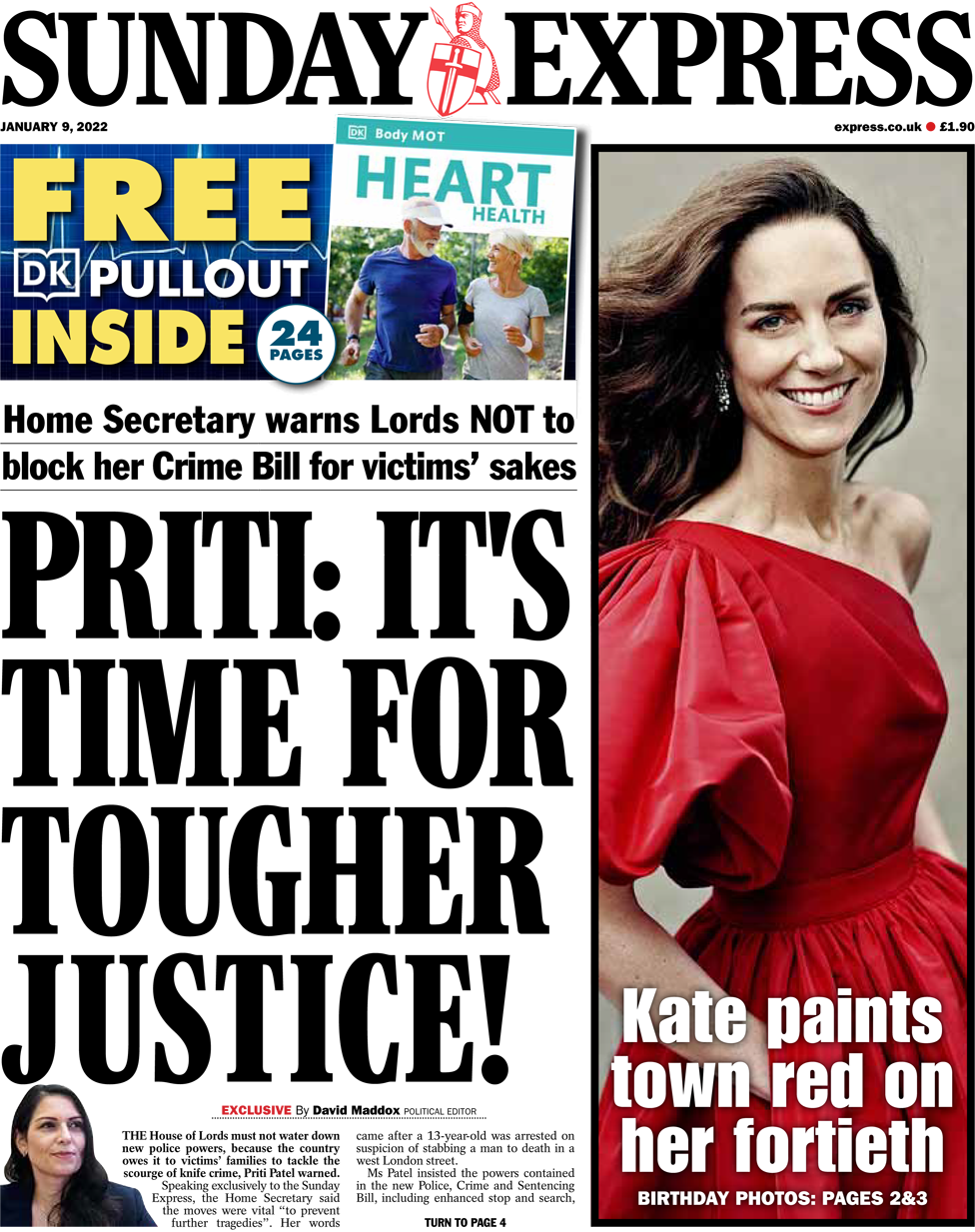 Η Sunday Express, με τίτλο «Ήρθε η ώρα για σκληρή δικαιοσύνη! Η υπουργός Εσωτερικών προειδοποιεί τους Λόρδους να μην την εμποδίσουν»,δημοσιεύει συνέντευξη με μια άλλη υπουργό της κυβέρνησης, την Priti Patel. Η υπουργός είπε στην εφημερίδα ότι η Βουλή των Λόρδων δεν πρέπει να αποδυναμώσει το νέο νομοσχέδιο για την αστυνομία, το έγκλημα και τις ποινές. Οι πρόσθετες εξουσίες είναι ζωτικής σημασίας “για την αποτροπή περαιτέρω τραγωδιών”, αναφέρει η εφημερίδα, σύμφωνα με την κ. Patel. «Οι συνάδελφοι στη Βουλή των Λόρδων δεν πρέπει να υποβαθμίσουν τις νέες αστυνομικές εξουσίες επειδή η χώρα το χρωστάει στις οικογένειες των θυμάτων για να αντιμετωπίσει τη μάστιγα του εγκλήματος», προειδοποίησε η Patel. Η υπουργός Εσωτερικών μίλησε αποκλειστικά στην Sunday Express μετά τη σύλληψη ενός 13χρονου και  ενός 24χρονου με την κατηγορία ότι μαχαίρωσαν έναν άνδρα μέχρι θανάτου σε δρόμο του δυτικού Λονδίνου. Ένας αριθμός ρεκόρ εφήβων σκοτώθηκαν στους δρόμους της Βρετανίας πέρυσι με 30 έφηβους και νεαρούς άνδρες να χάνουν τη ζωή τους μόνο στο Λονδίνο. Το νομοσχέδιο έρχεται στη Βουλή των Λόρδων αυτήν την εβδομάδα και οι βουλευτές ενημερώθηκαν ότι οποιαδήποτε απόπειρα καθυστέρησης θα μπορούσε να κοστίσει ζωές.