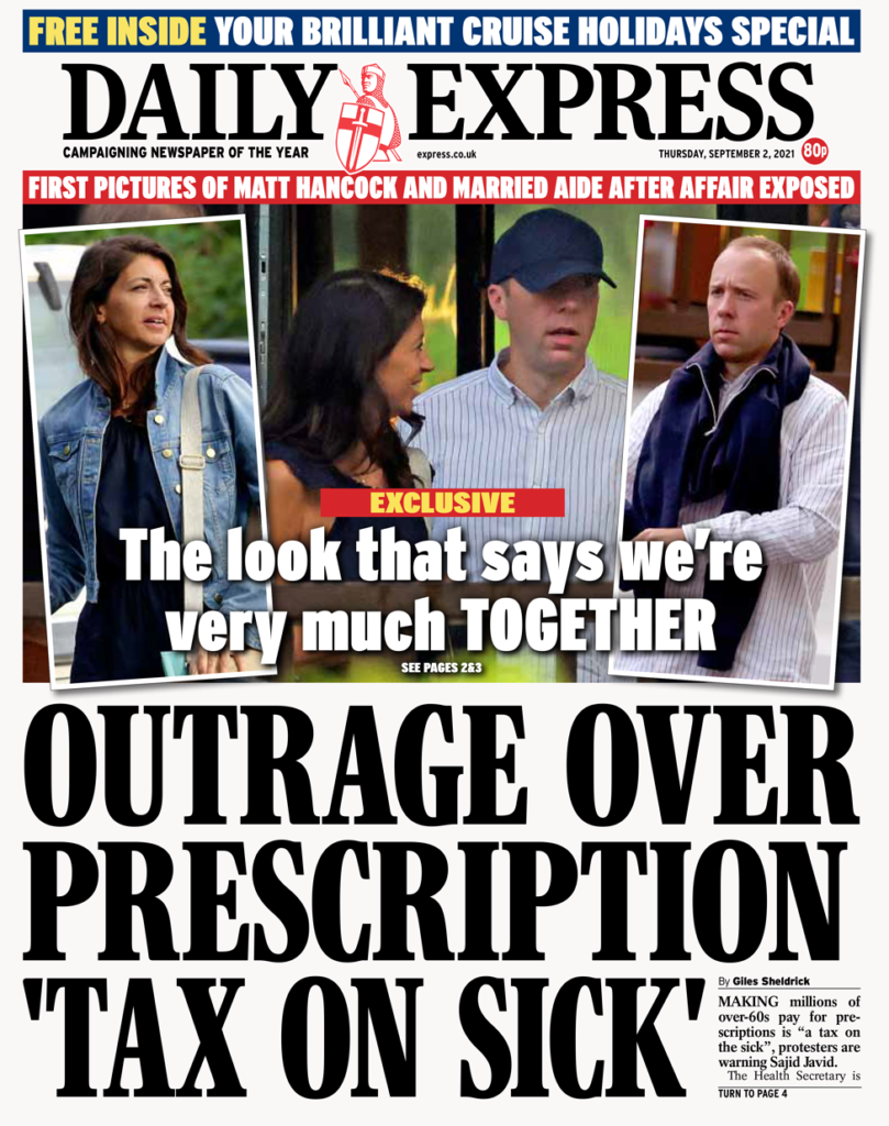Η Daily Express αναφέρει ότι υπάρχει «οργή» για τις προτάσεις να πληρώσουν εκατομμύρια για συνταγές στο NHS, οι Άγγλοι ηλικίας μεταξύ 60 και 65 ετών. Οι διαμαρτυρόμενοι επέκριναν την ιδέα ως «φόρο στους ασθενείς», αναφέρει η εφημερίδα. Δημοσιεύει μια ανοιχτή επιστολή προς τον υπουργό Υγείας, υπογεγραμμένη από 25 οργανισμούς υγείας και φιλανθρωπικά ιδρύματα, η οποία λέει ότι η πρόταση «κινδυνεύει σοβαρά να διευρύνει τις ανισότητες στην υγεία». Γράφοντας στην εφημερίδα, ο Thorrun Govind από τη Βασιλική Φαρμακευτική Εταιρεία προχωράει σε μια πιο ριζοσπαστική δράση, πιέζοντας τους υπουργούς να καταργήσουν πλήρως τις χρεώσεις συνταγών, για να μην αναγκάζουν τους ανθρώπους να επιλέγουν ποια φάρμακα αντέχουν οικονομικά να αγοράσουν.