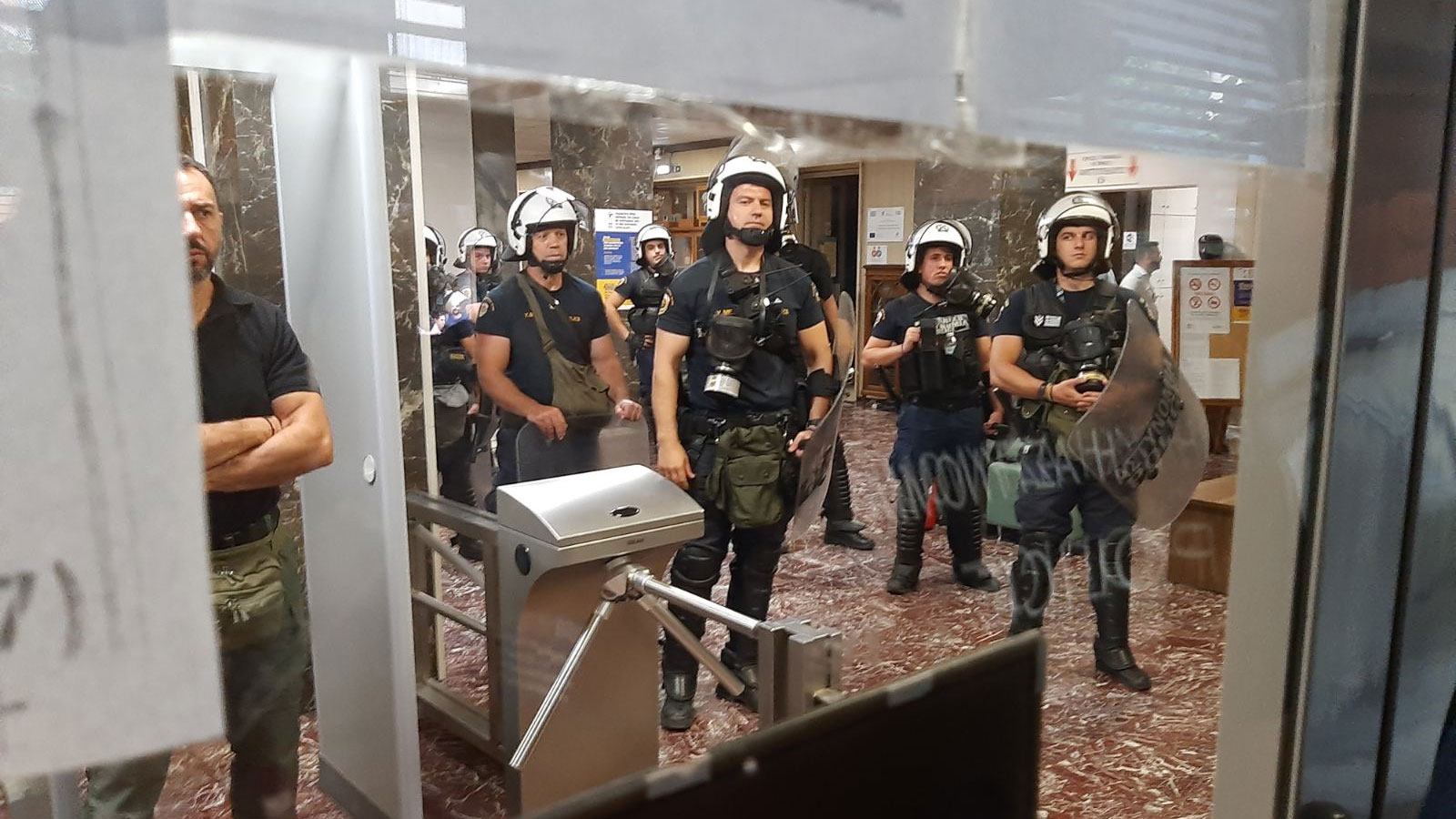 Κατήγγειλαν την παρουσία ισχυρών αστυνομικών δυνάμεων και συγκεκριμένα διμοιριών των ΜΑΤ οι οποίες μπήκαν στο εσωτερικό του υπουργείου υγείας από την πίσω πόρτα και ήταν παραταγμένες και σε «ετοιμότητα» για να «υποδεχτούν», τους «ήρωες» υγειονομικούς. Απαίτησαν την άμεση αποχώρηση των αστυνομικών δυνάμεων και συνάντηση αντιπροσωπείας τους με την πολιτική ηγεσία του υπουργείου προκειμένου να θέσουν τα μεγάλα προβλήματά τους.