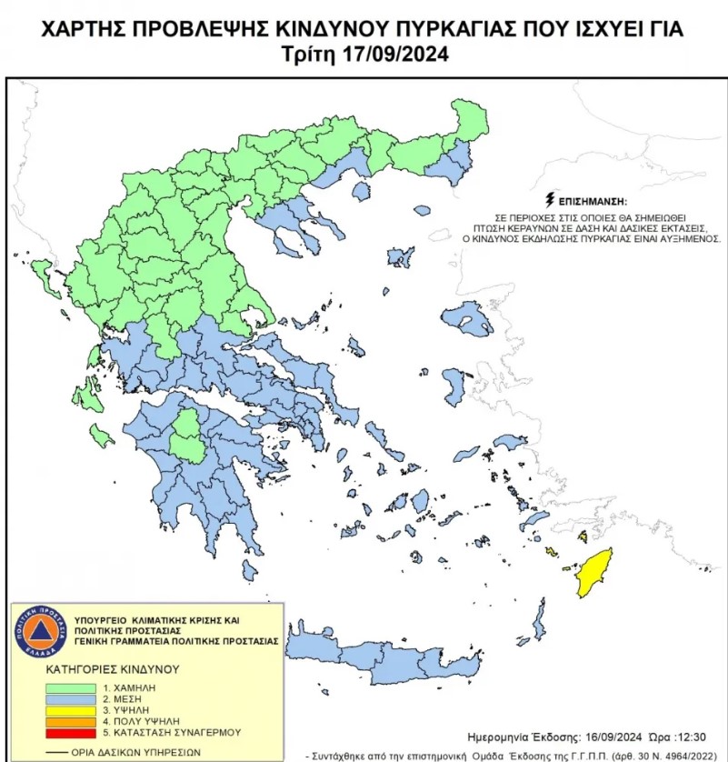 Χαμηλή η κατηγορία κινδύνου στην υπόλοιπη Ελλάδα.